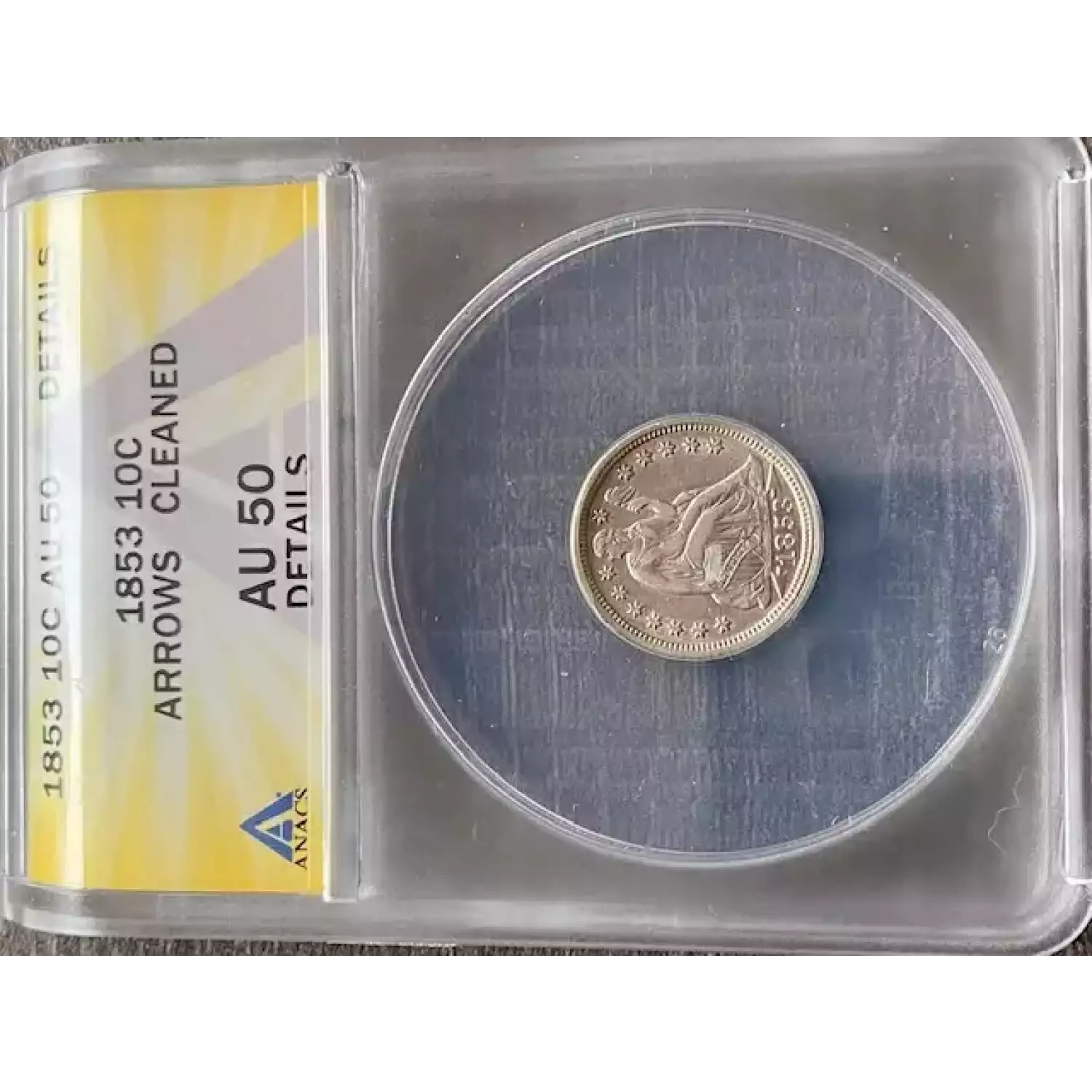 514673 | 1853-AU Details Liberty Seated Dime ANACS AU Details | ANACS | AU Details | Sold: 06/01/2021 | $90 |