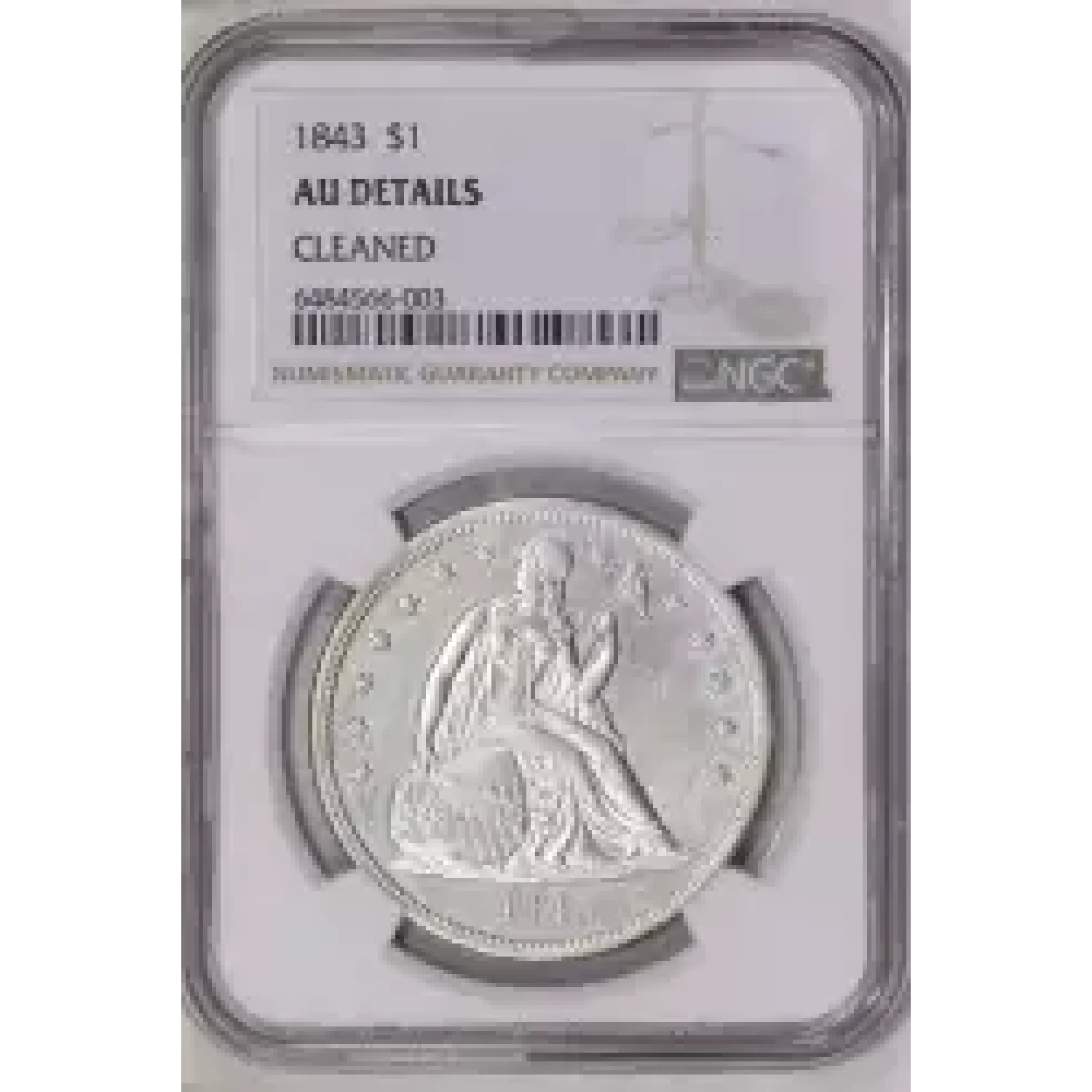 504283 | 1843-AU-53 Liberty Seated Silver Dollars NGC AU-53 | NGC | AU-53 | Sold: 04/10/2008 | $975 |