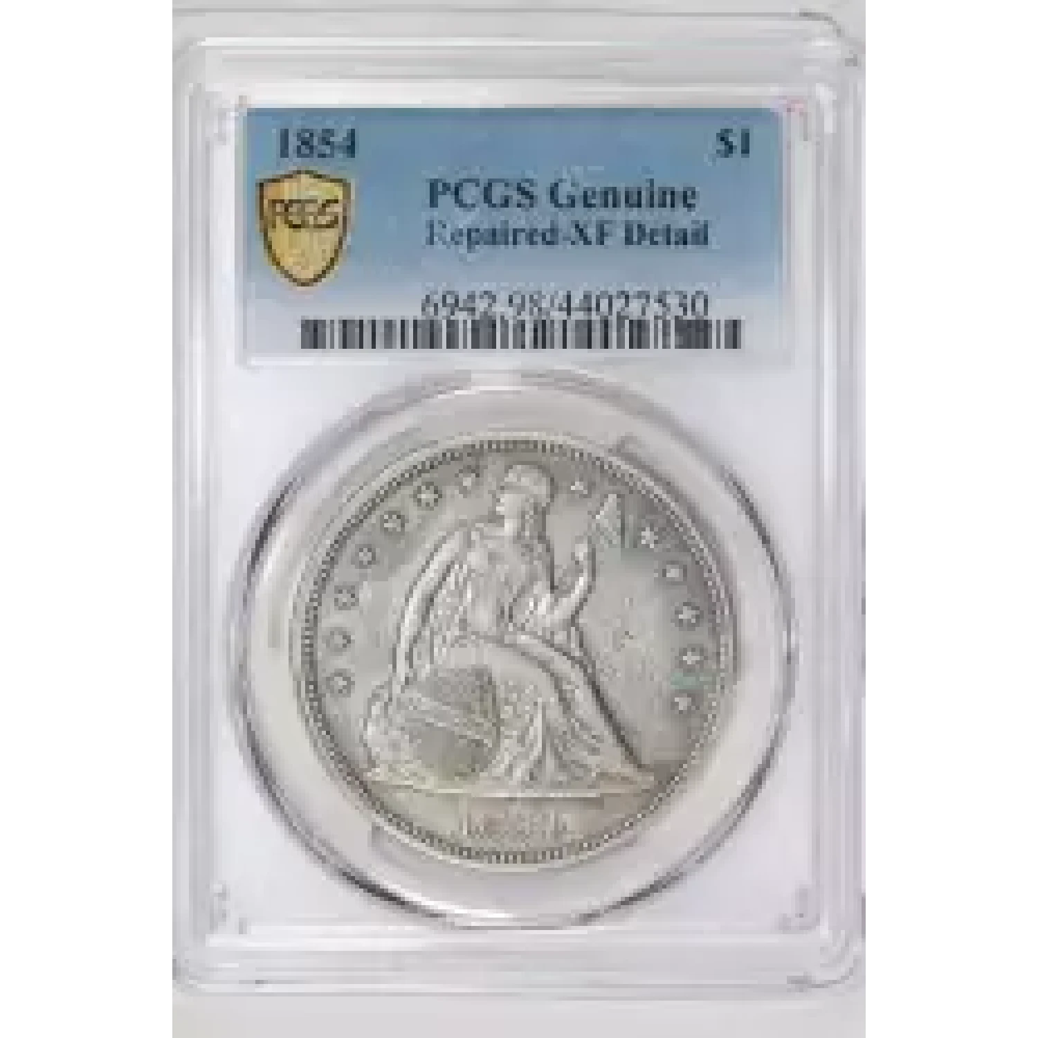 501468 | 1854 Liberty Seated Silver Dollars PCGS Genuine - XF Details (98 - Damage) | PCGS | Genuine - XF Details (98 - Damage) | Sold: 18/04/2023 | $7,000 |