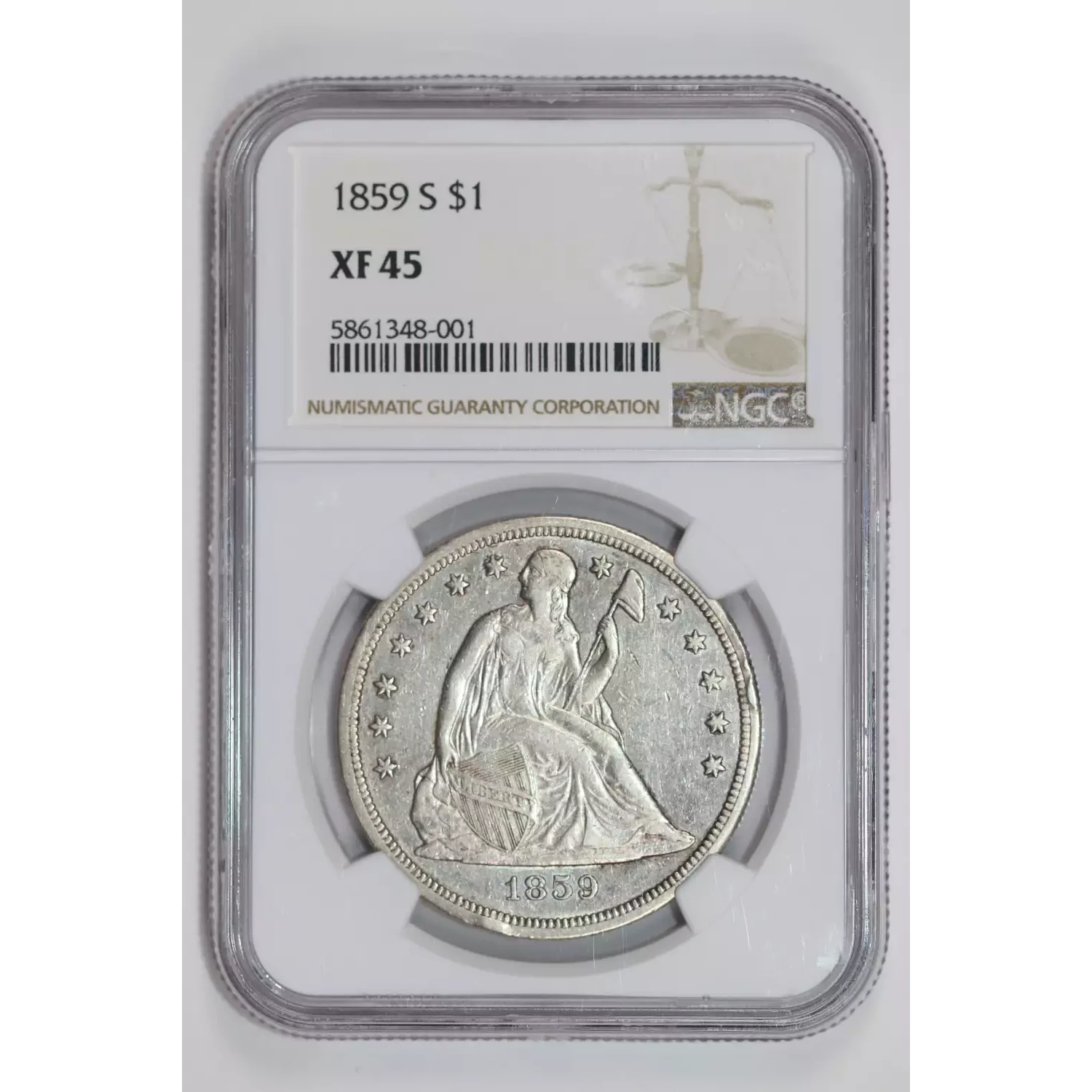 535013 | 1859-S Liberty Seated Silver Dollars NGC XF-45 | NGC | XF-45 | Sold: 07/08/2025 | $4,950 |