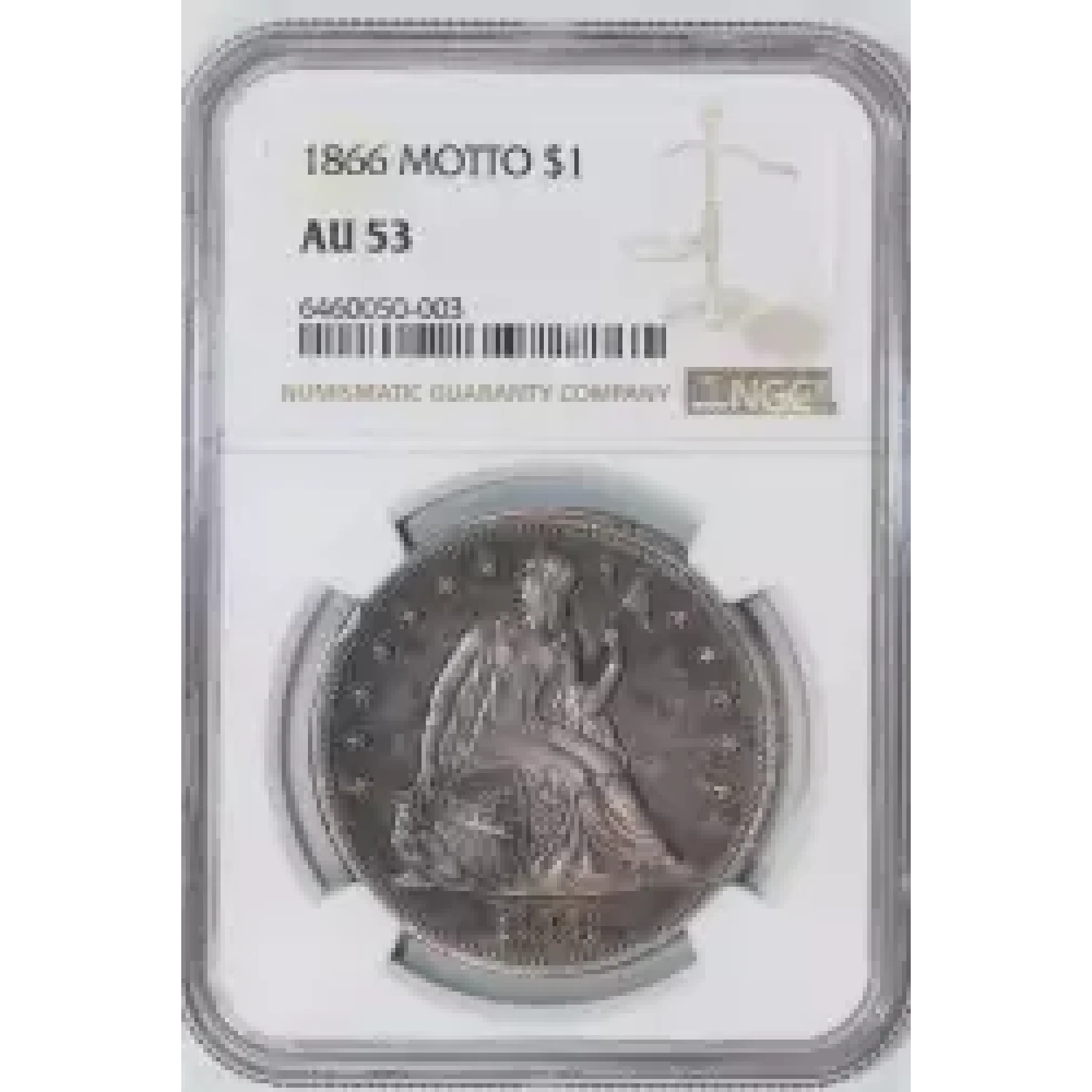 502204 | 1866 Liberty Seated Silver Dollars NGC AU-53 | NGC | AU-53 | Sold: 22/06/2022 | $1,895 |