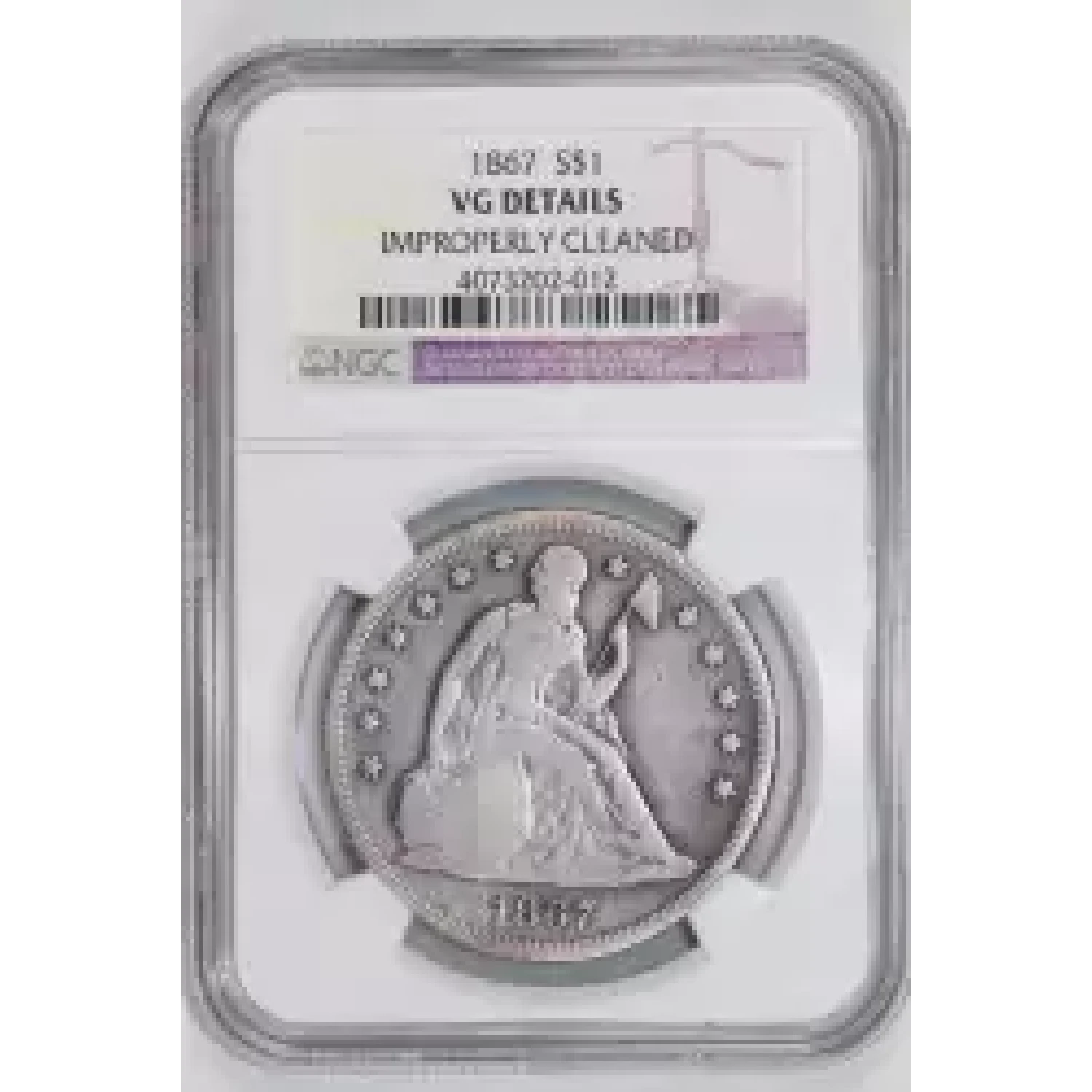 517170 | 1867 Liberty Seated Silver Dollars NGC VG Details | NGC | VG Details | Sold: 24/04/2023 | $750 |