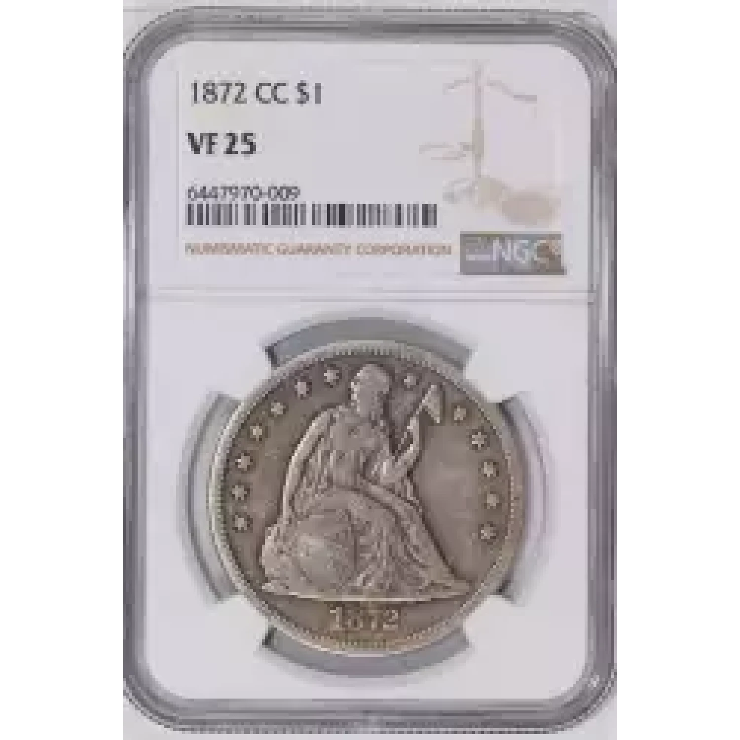 501278 | 1872-CC Liberty Seated Silver Dollars NGC VF-25 | NGC | VF-25 | Sold: 06/12/2022 | $5,250 |