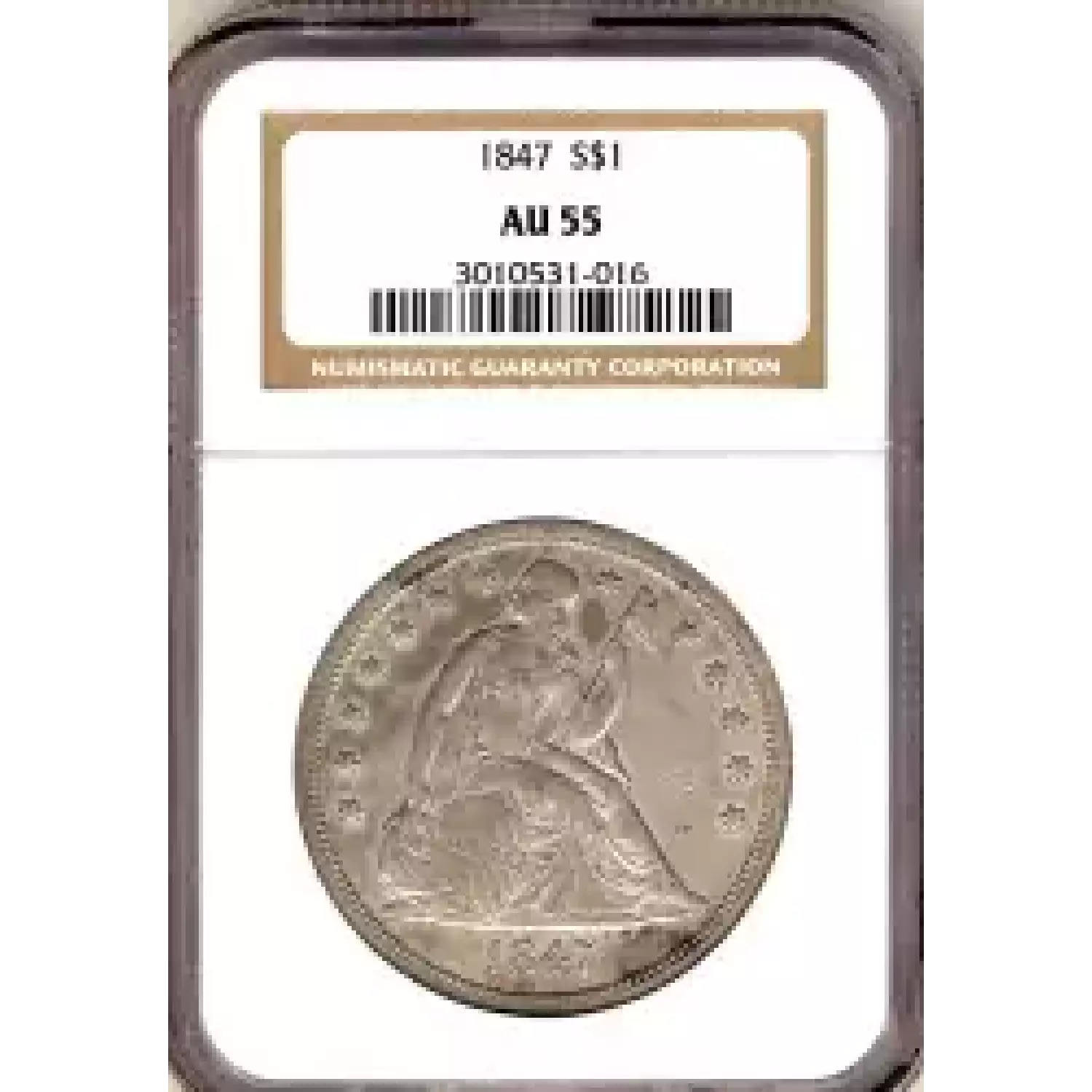 504255 | 1847-AU-55 Liberty Seated Silver Dollars NGC AU-55 | NGC | AU-55 | Sold: 18/03/2010 | $1,100 |