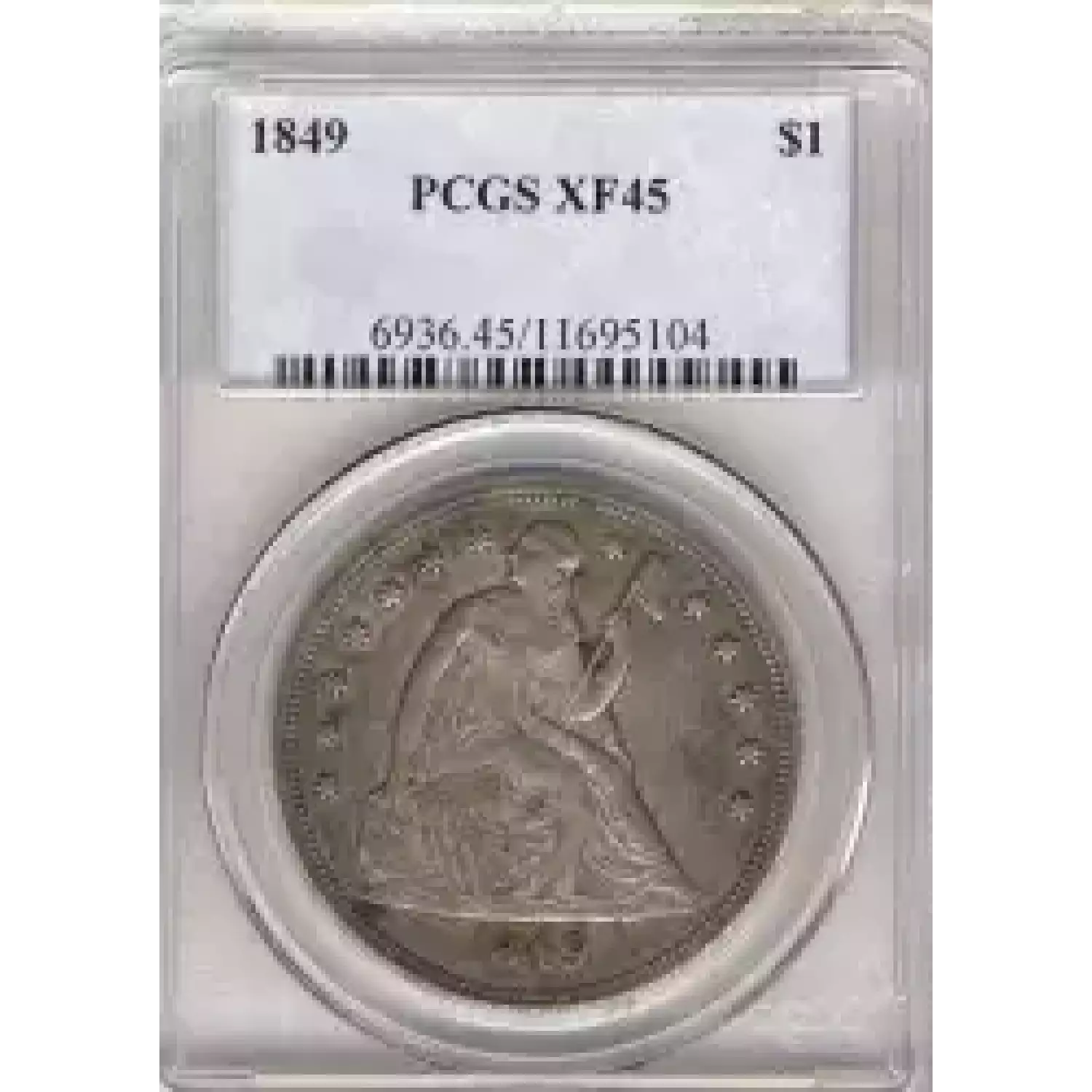 504282 | 1849-XF-45 Liberty Seated Silver Dollars PCGS XF-45 | PCGS | XF-45 | Sold: 07/11/2008 | $700 |