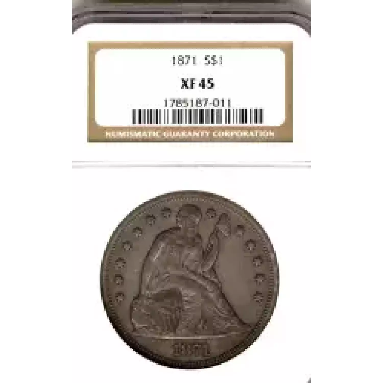 504285 | 1871-XF-45 Liberty Seated Silver Dollars NGC XF-45 | NGC | XF-45 | Sold: 04/09/2008 | $475 |