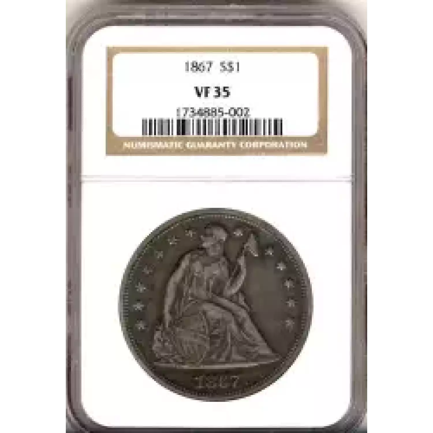 504421 | 1867-VF-35 Liberty Seated Silver Dollars NGC VF-35 | NGC | VF-35 | Sold: 26/09/2008 | $800 |