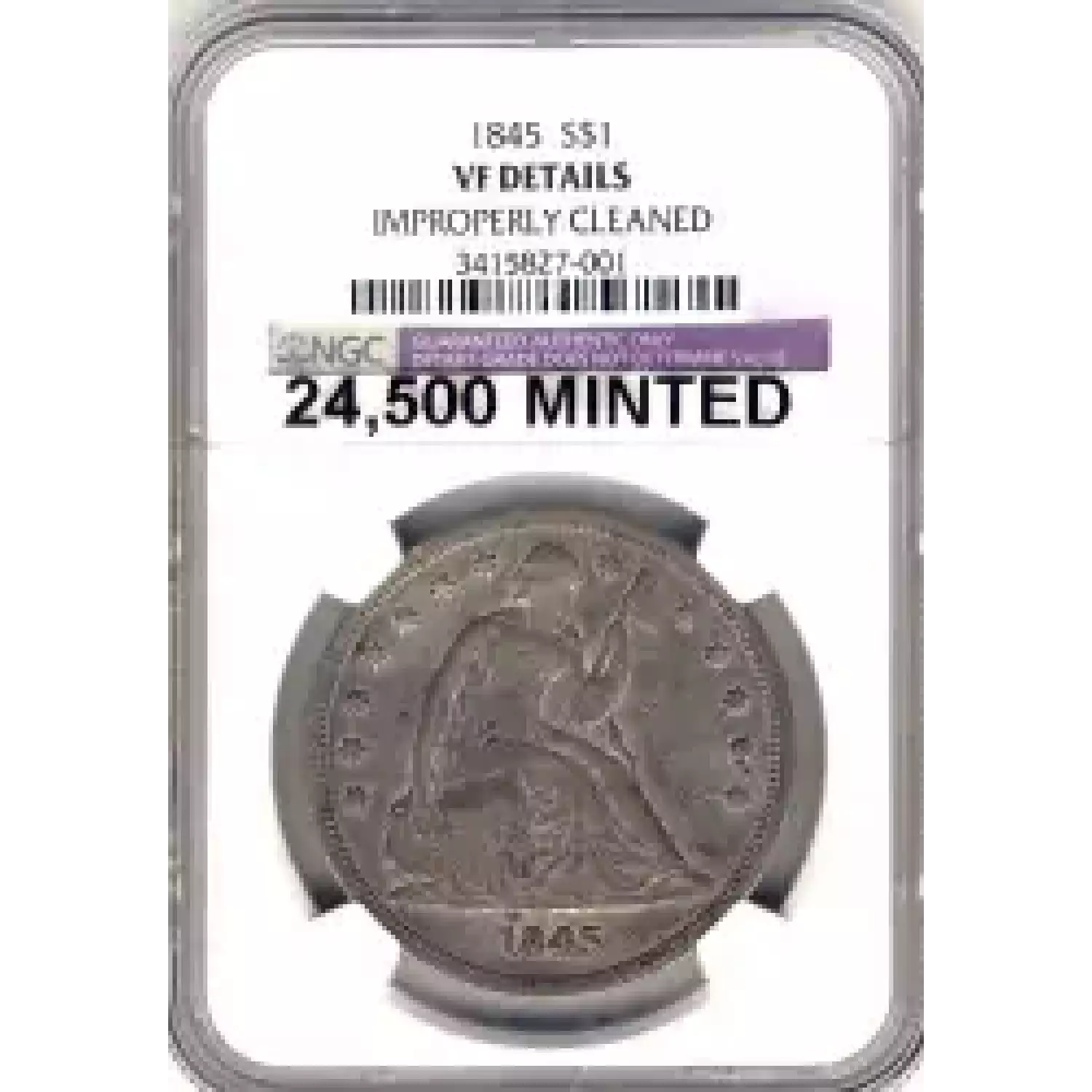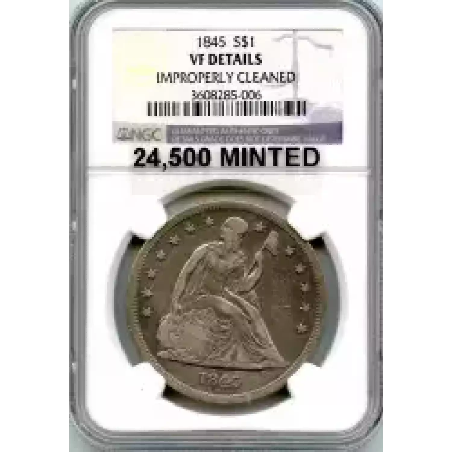 506132 | 1845-VF Details Liberty Seated Silver Dollars NGC VF Details | NGC | VF Details | Sold: 02/04/2013 | $500 |