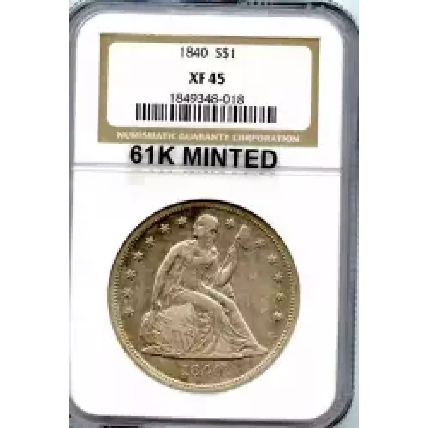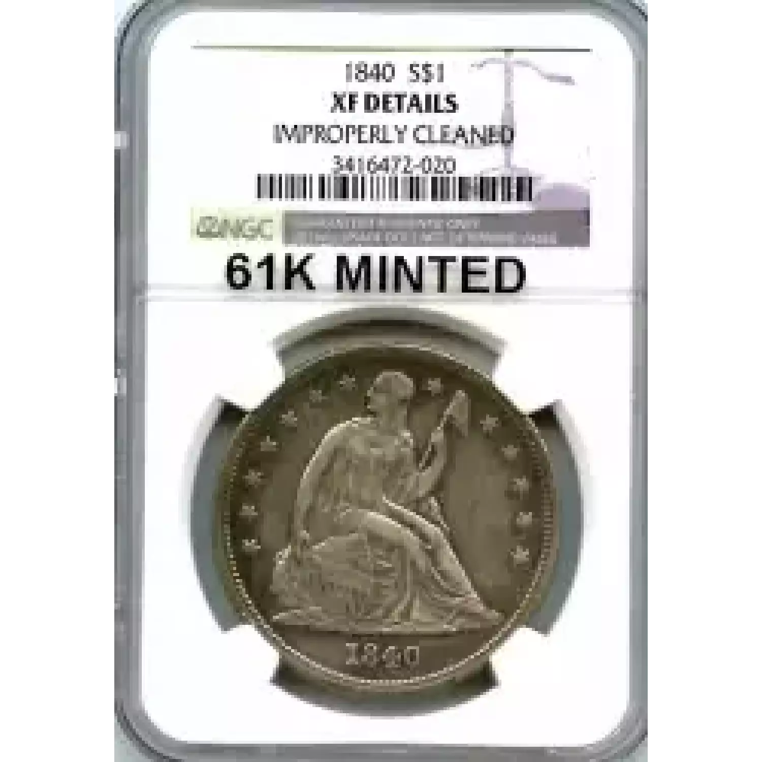 513083 | 1840-VF-35 Liberty Seated Silver Dollars NGC VF-35 | NGC | VF-35 | Sold: 17/11/2019 | $650 |
