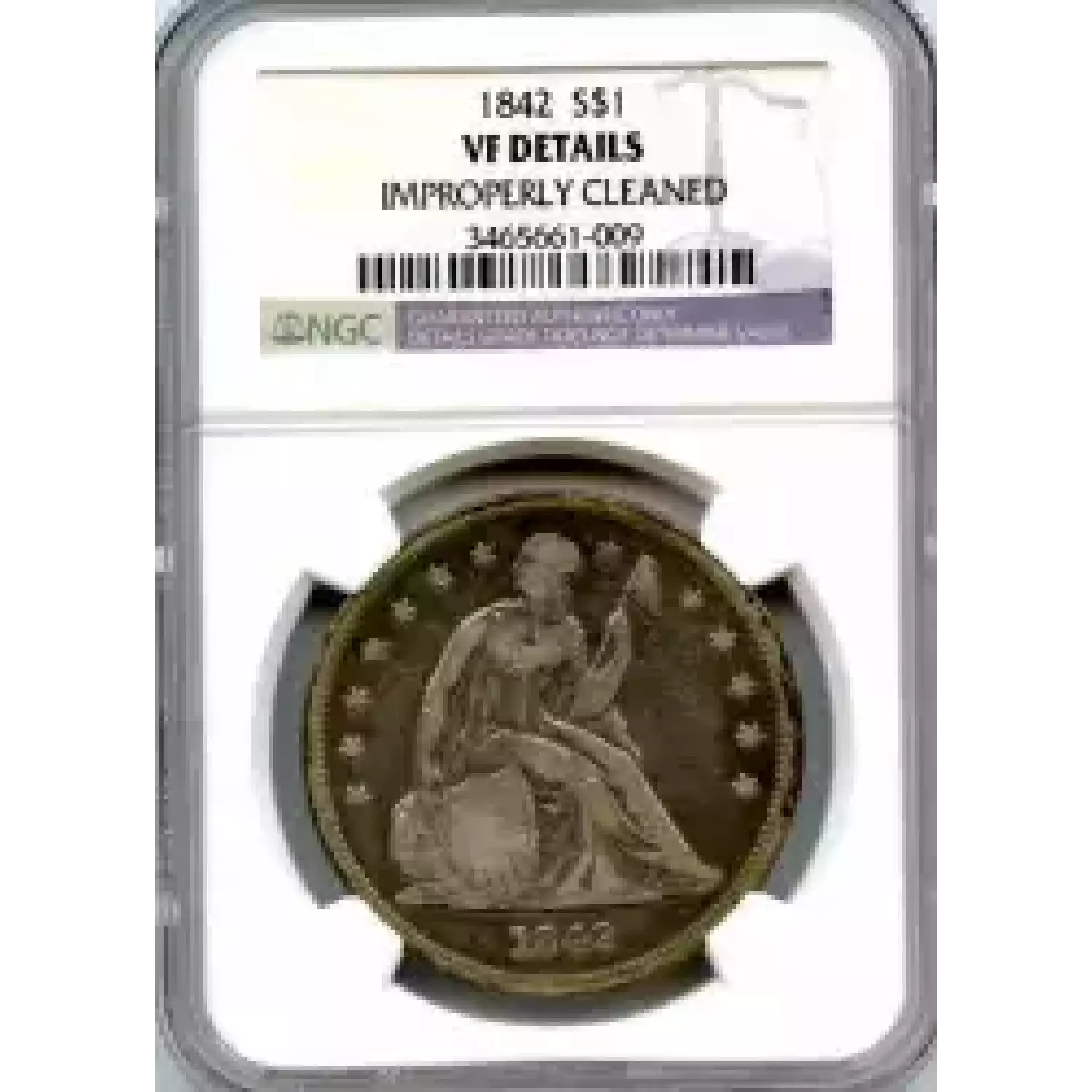 506418 | 1842-VF Details Liberty Seated Silver Dollars NGC VF Details | NGC | VF Details | Sold: 15/09/2013 | $242.53 |