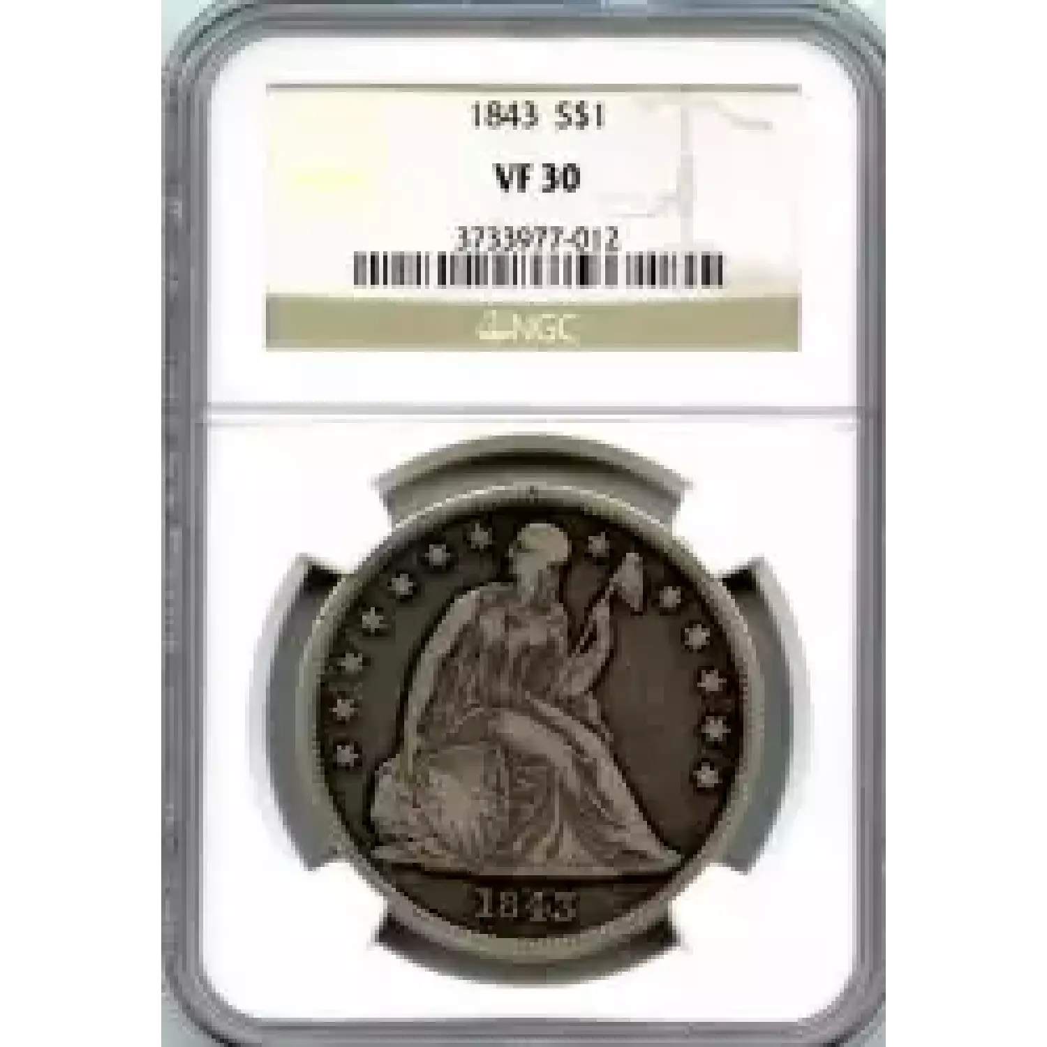 506680 | 1843-VF-30 Liberty Seated Silver Dollars NGC VF-30 | NGC | VF-30 | Sold: 25/12/2013 | $440 |