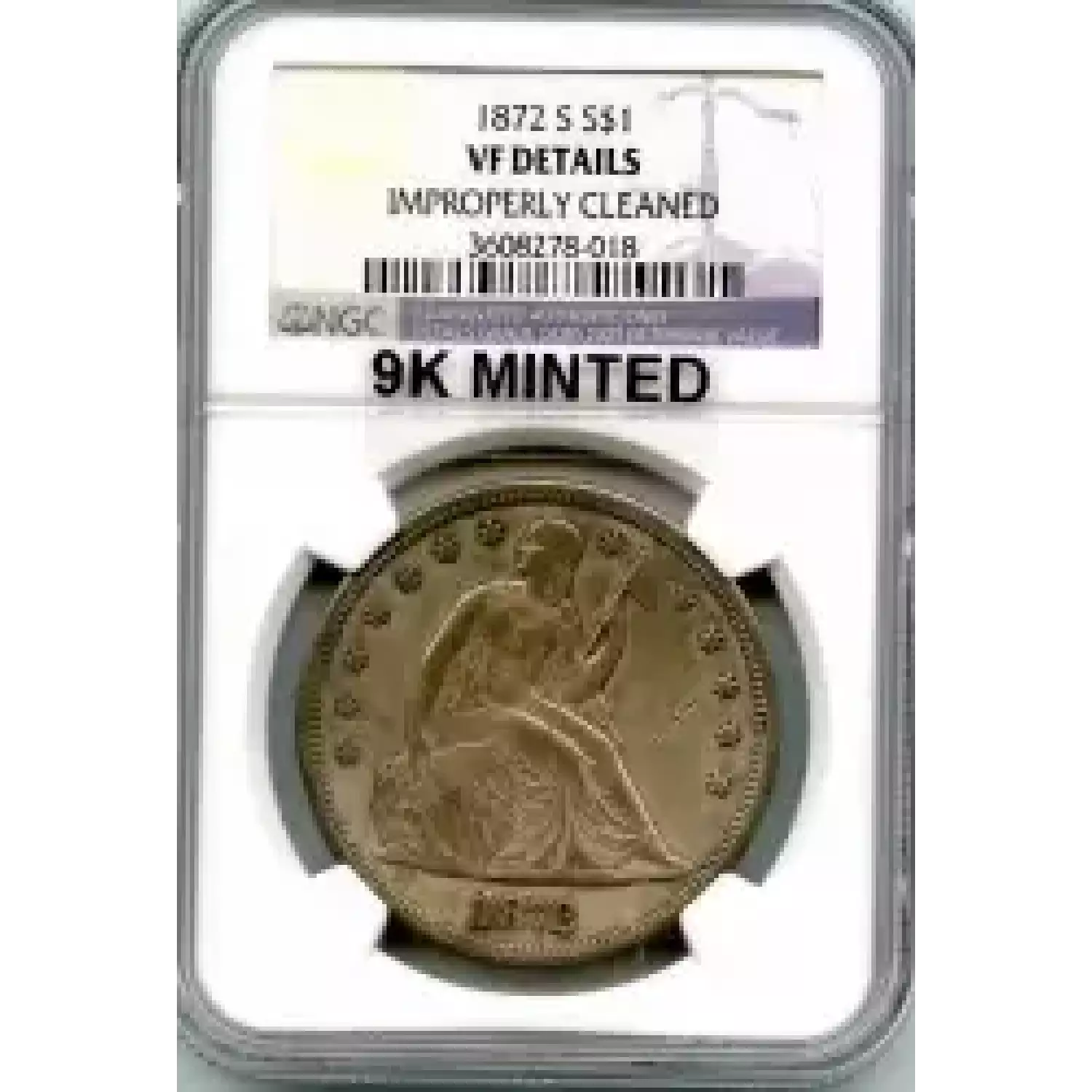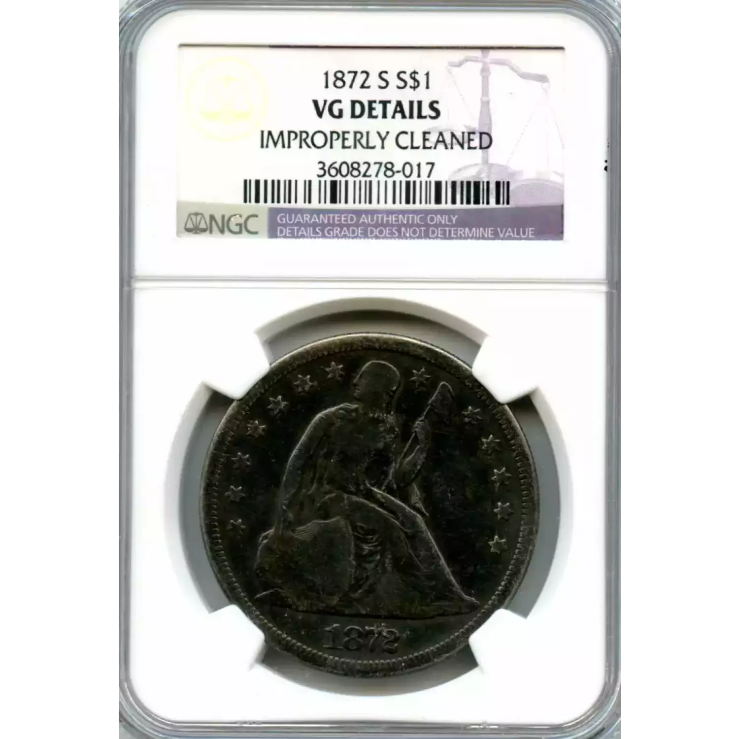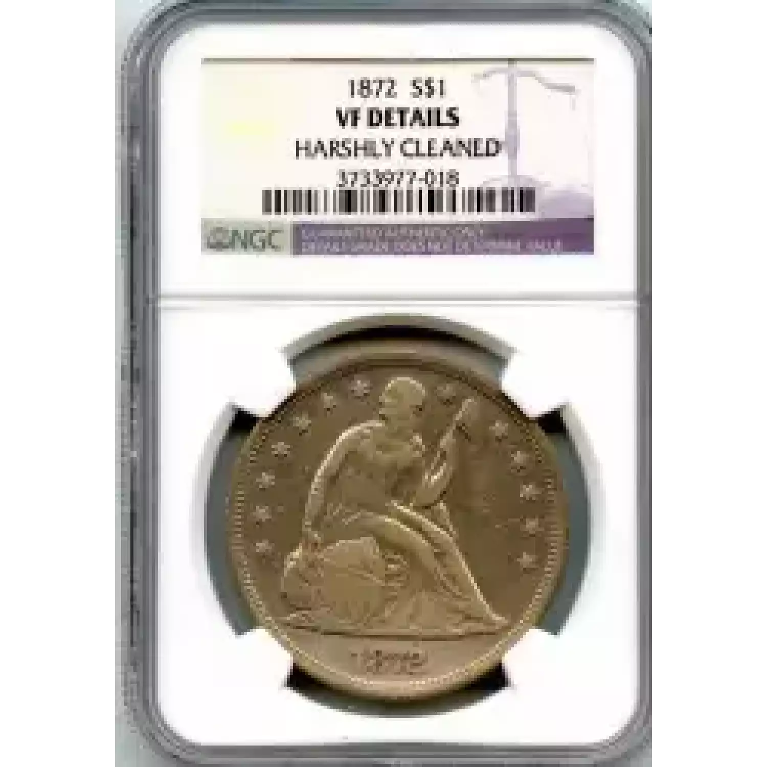 506908 | 1872-VF Details Liberty Seated Silver Dollars NGC VF Details | NGC | VF Details | Sold: 28/01/2014 | $285 |