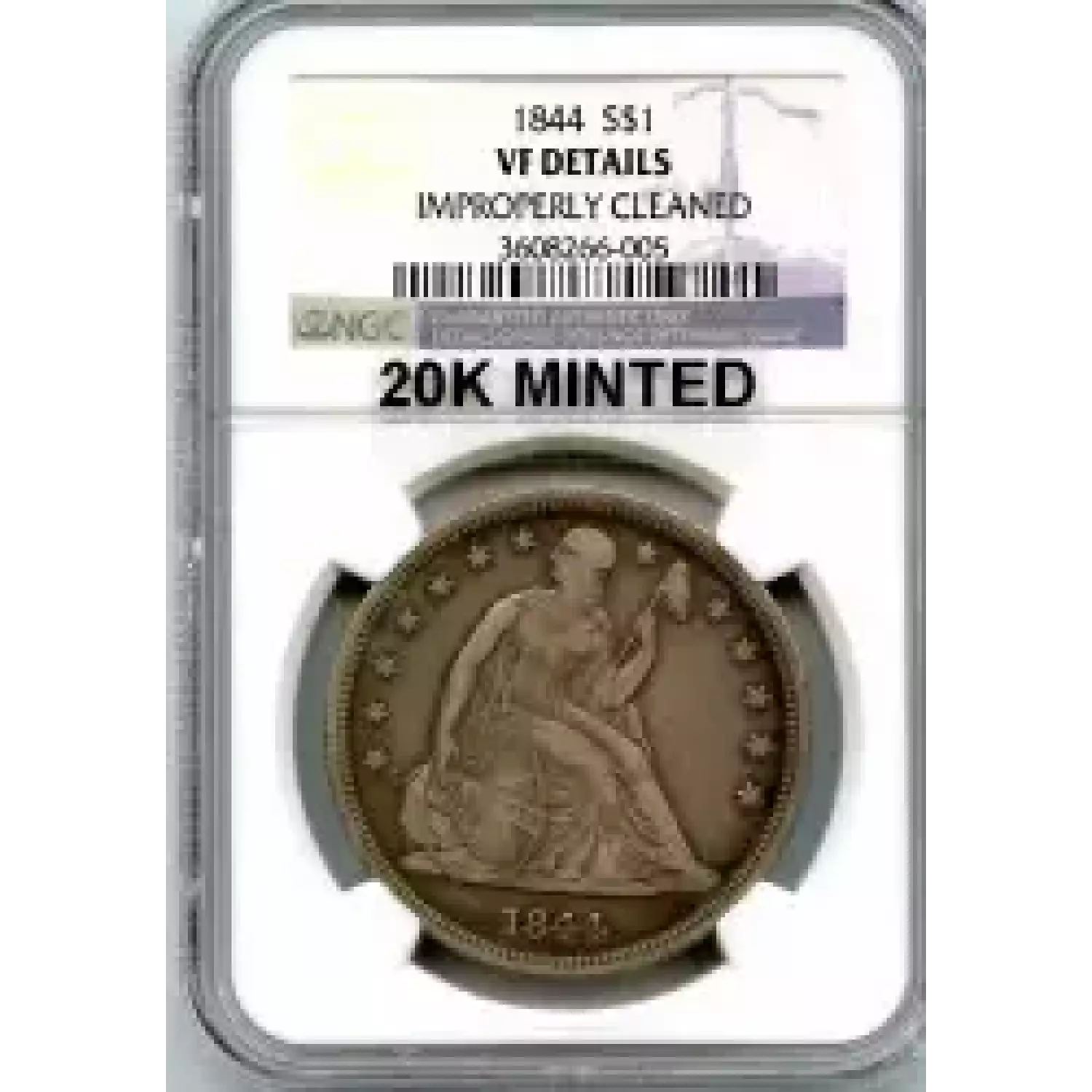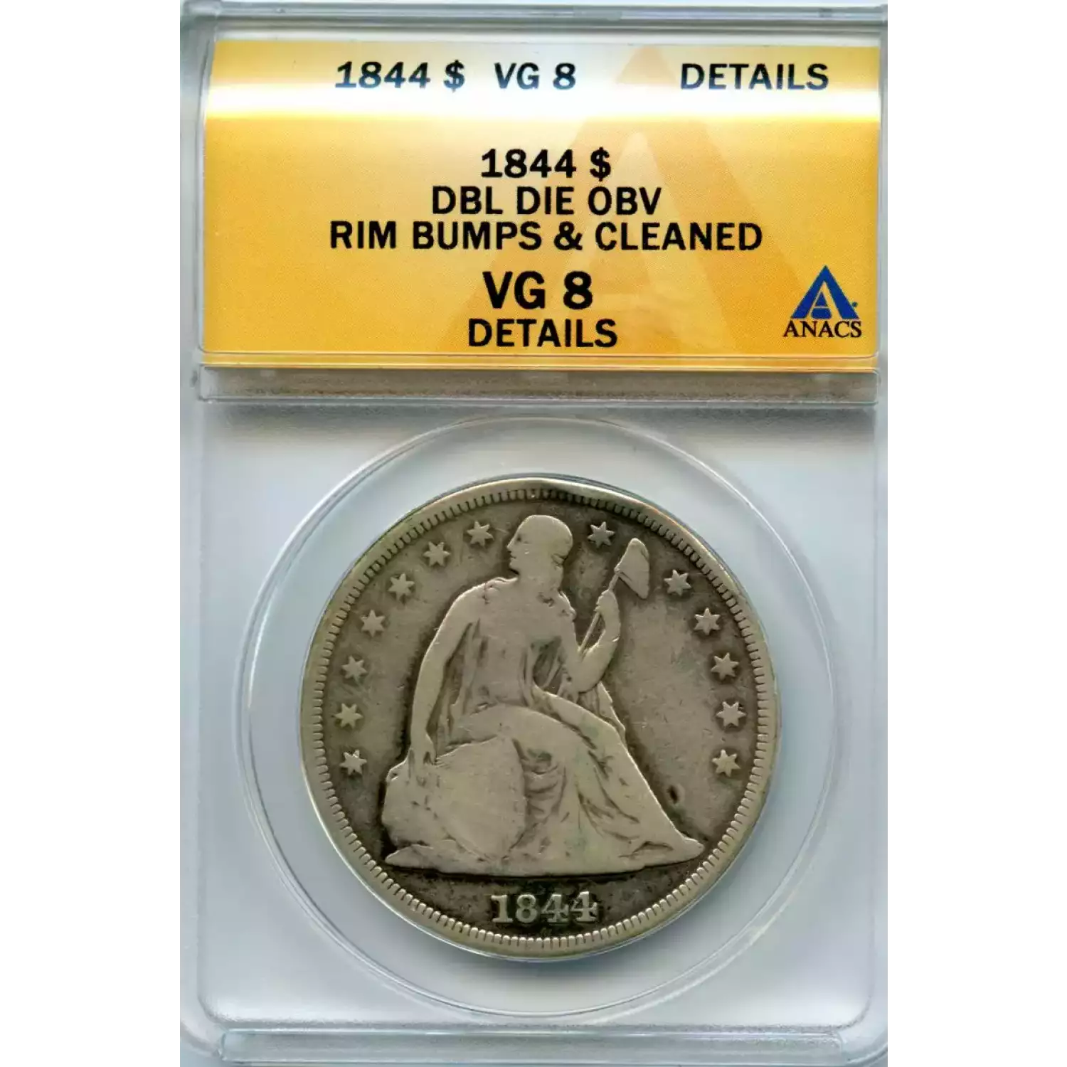 507059 | 1844-VG Details Liberty Seated Silver Dollars ANACS VG Details | ANACS | VG Details | Sold: 16/11/2013 | $237.50 |