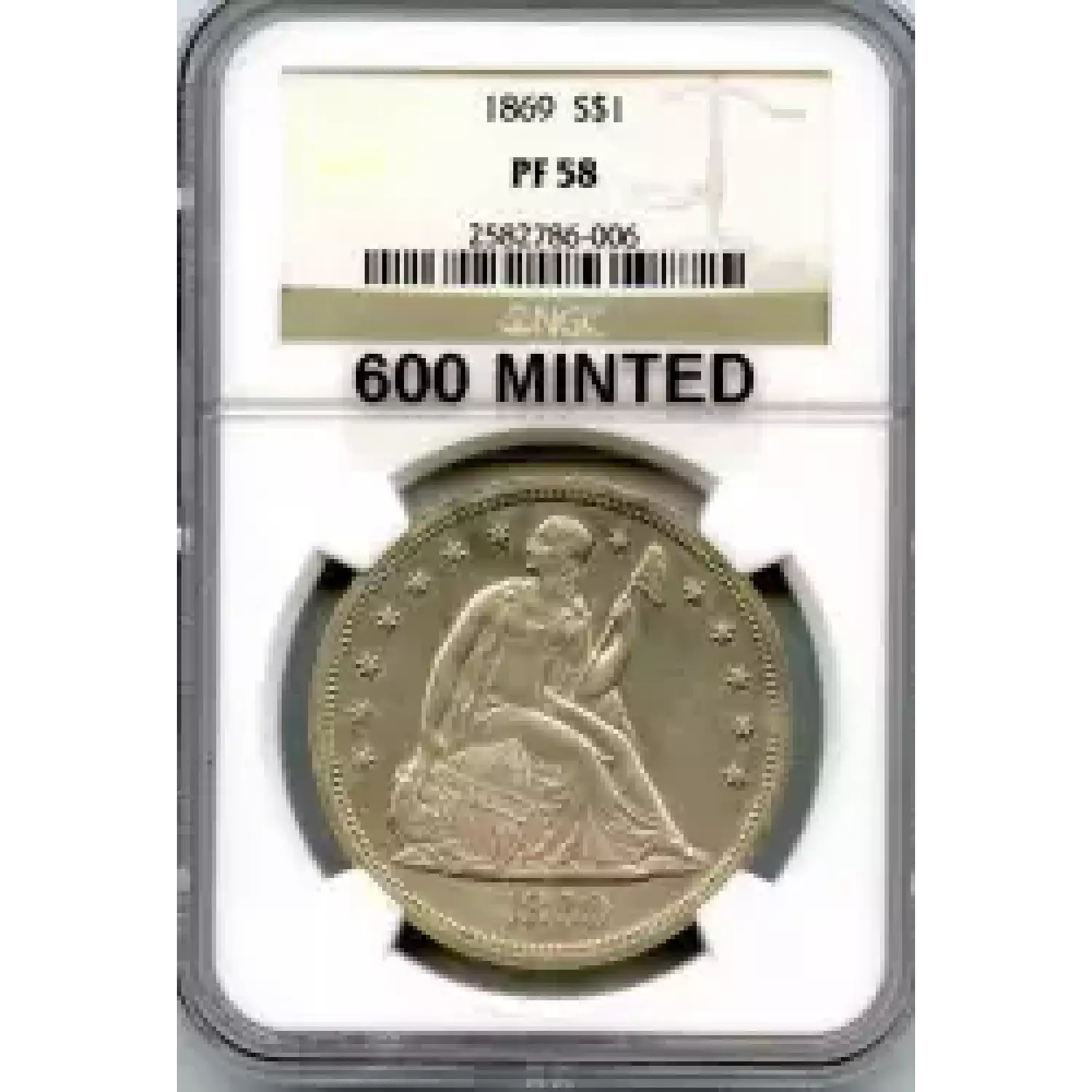 507216 | 1869-PF-58 Liberty Seated Silver Dollars NGC PF-58 | NGC | PF-58 | Sold: 09/02/2014 | $1,610 |