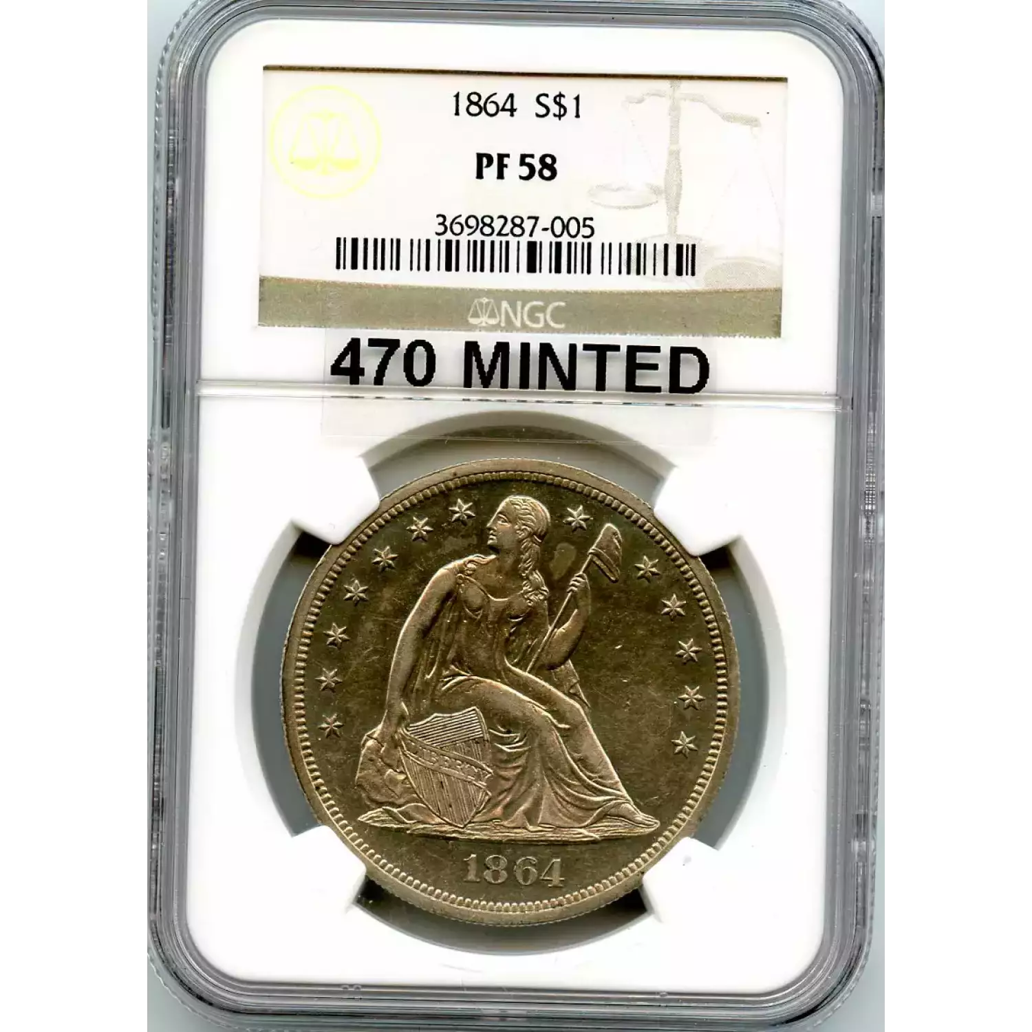 504466 | 1864-PF-63 Liberty Seated Silver Dollars NGC PF-63 | NGC | PF-63 | Sold: 08/11/2008 | $3,900 |