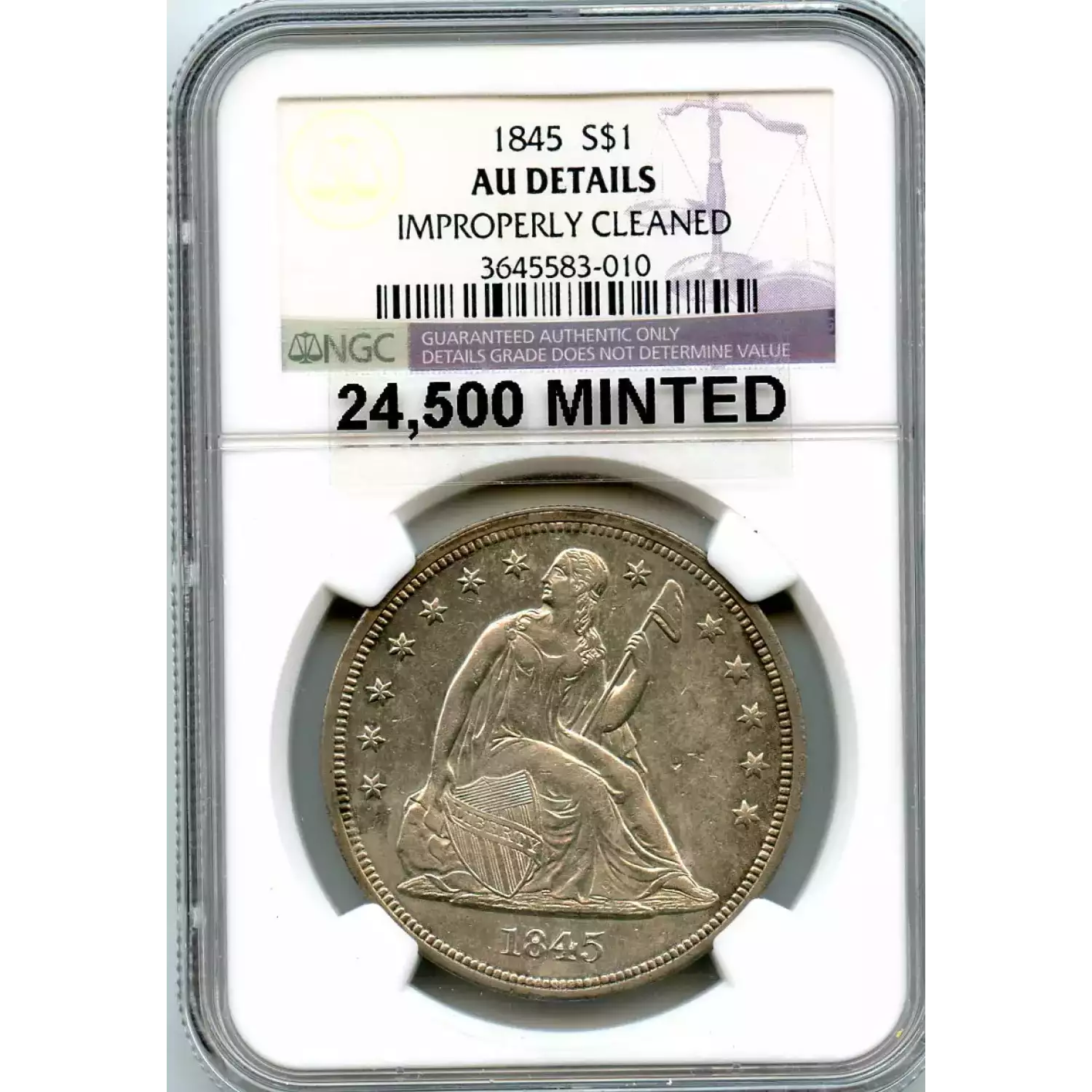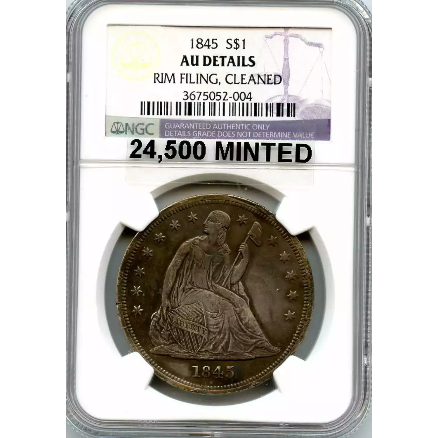 535009 | 1845 Liberty Seated Silver Dollars NGC AU-53 | NGC | AU-53 | Sold: 07/08/2025 | $3,250 |