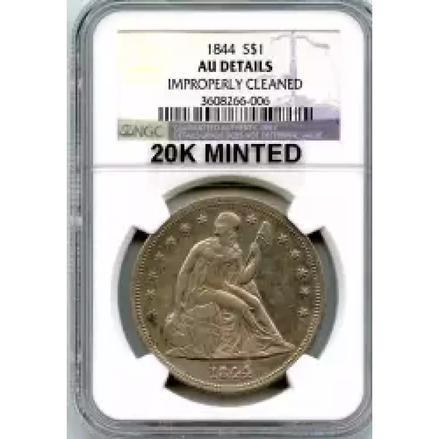 504876 | 1844-AU-53 Liberty Seated Silver Dollars NGC AU-53 | NGC | AU-53 | Sold: 28/09/2009 | $2,000 |