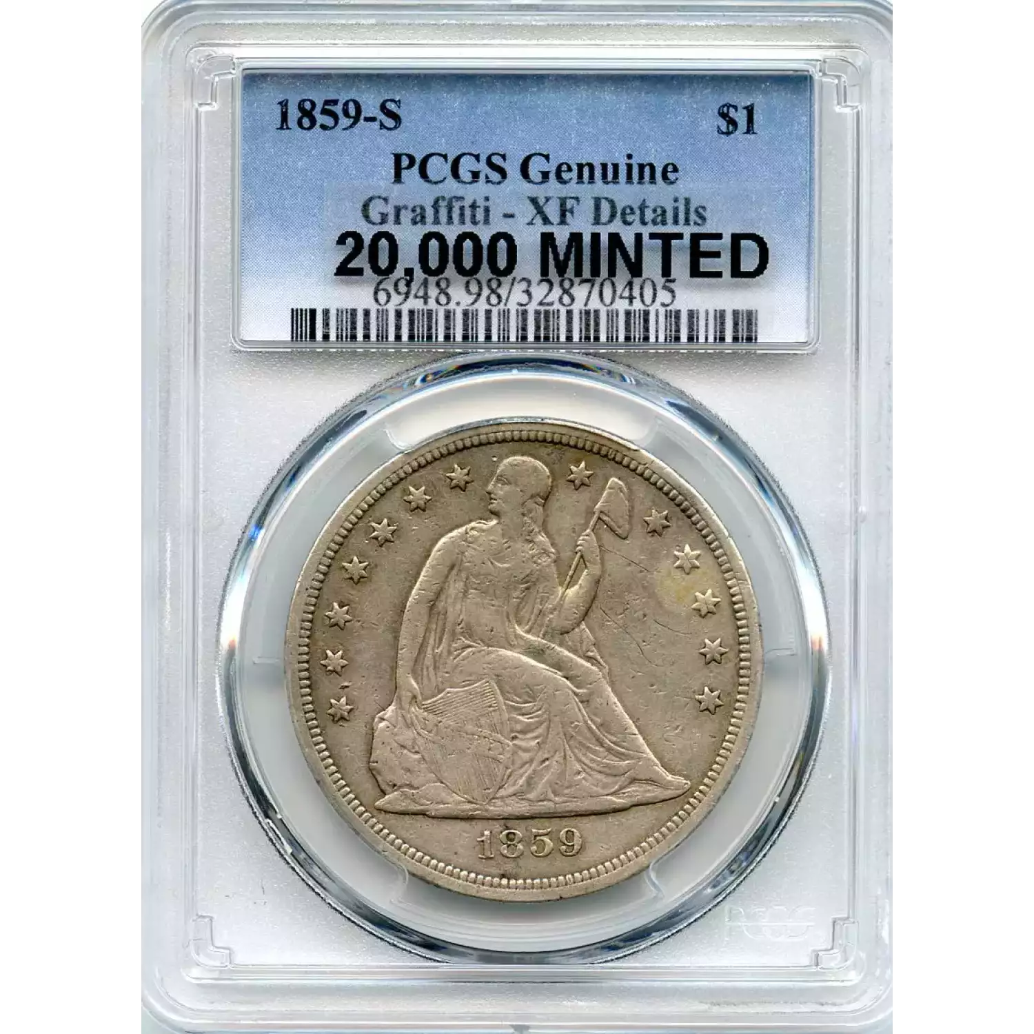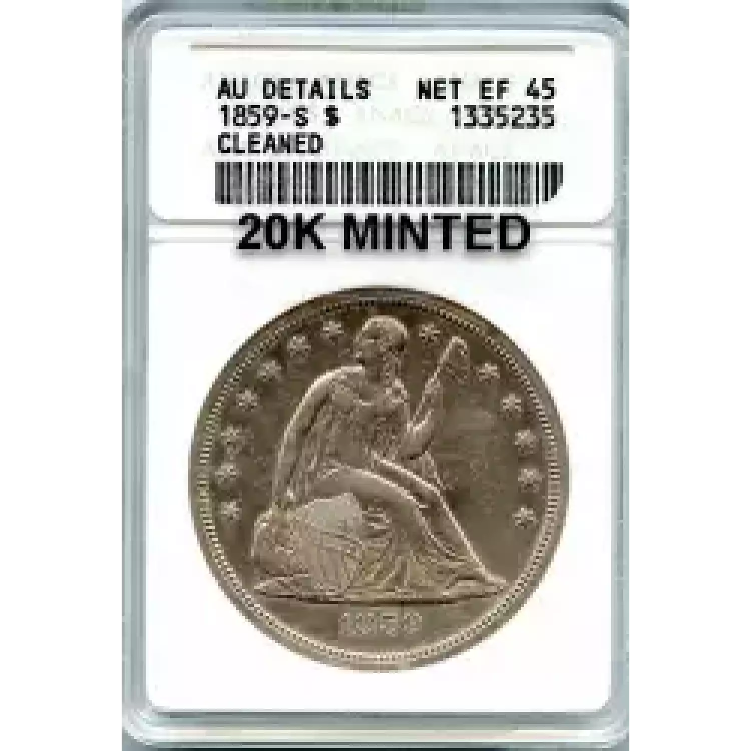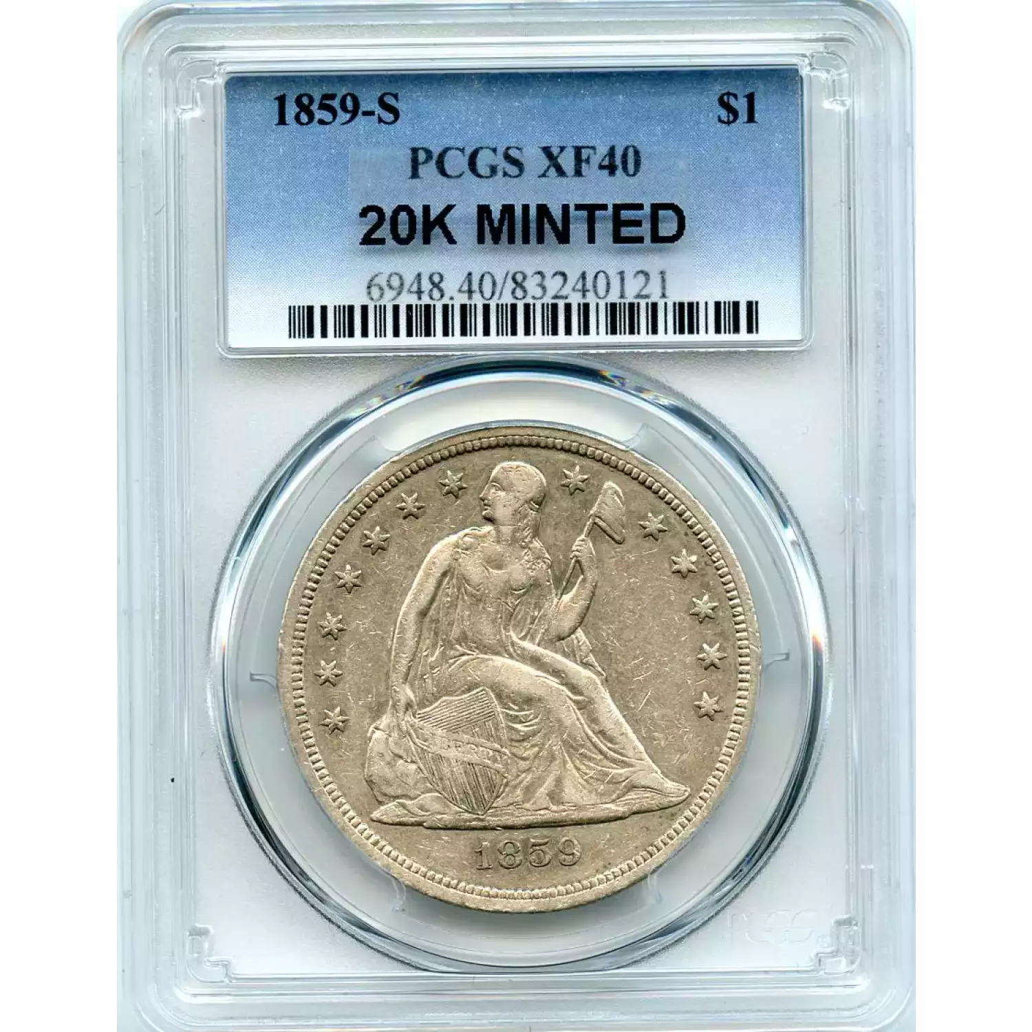 513451 | 1859-XF-45 Liberty Seated Silver Dollars PCGS XF-45 | PCGS | XF-45 | Sold: 16/04/2020 | $1,000 |