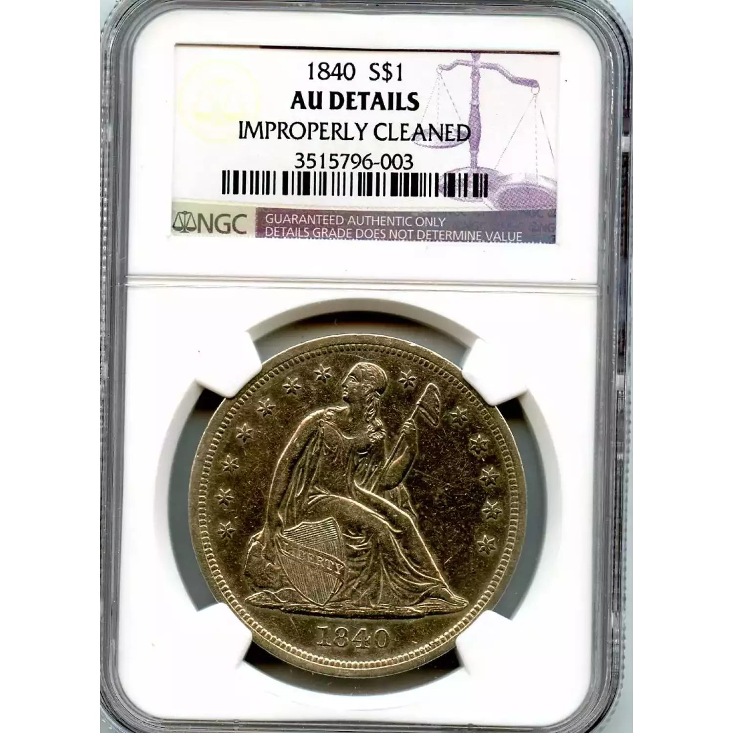 506257 | 1840-AU Details Liberty Seated Silver Dollars NGC AU Details | NGC | AU Details | Sold: 07/08/2012 | $600 |