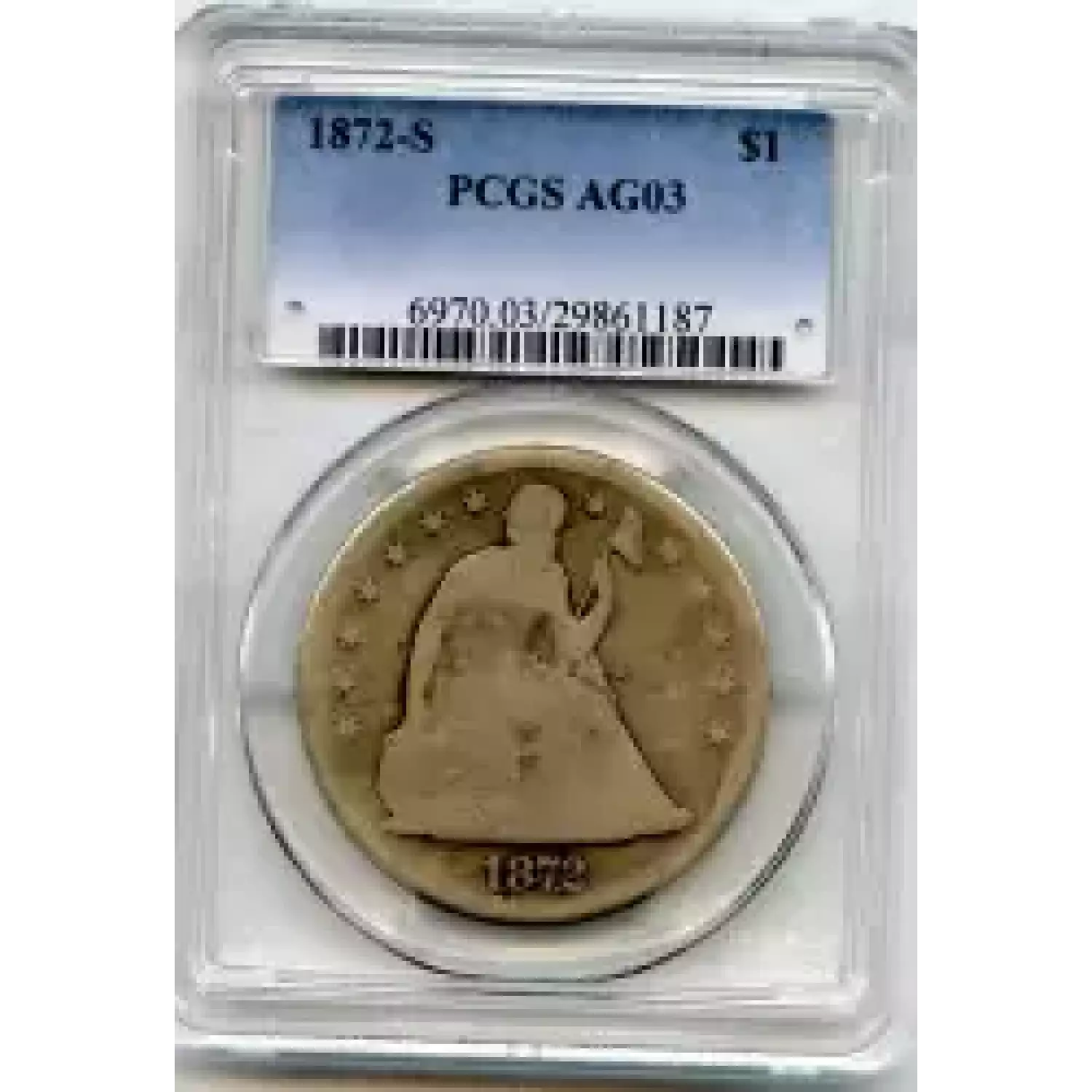 508247 | 1872-AG-3 Liberty Seated Silver Dollars PCGS AG-3 | PCGS | AG-3 | Sold: 02/01/2015 | $375 |