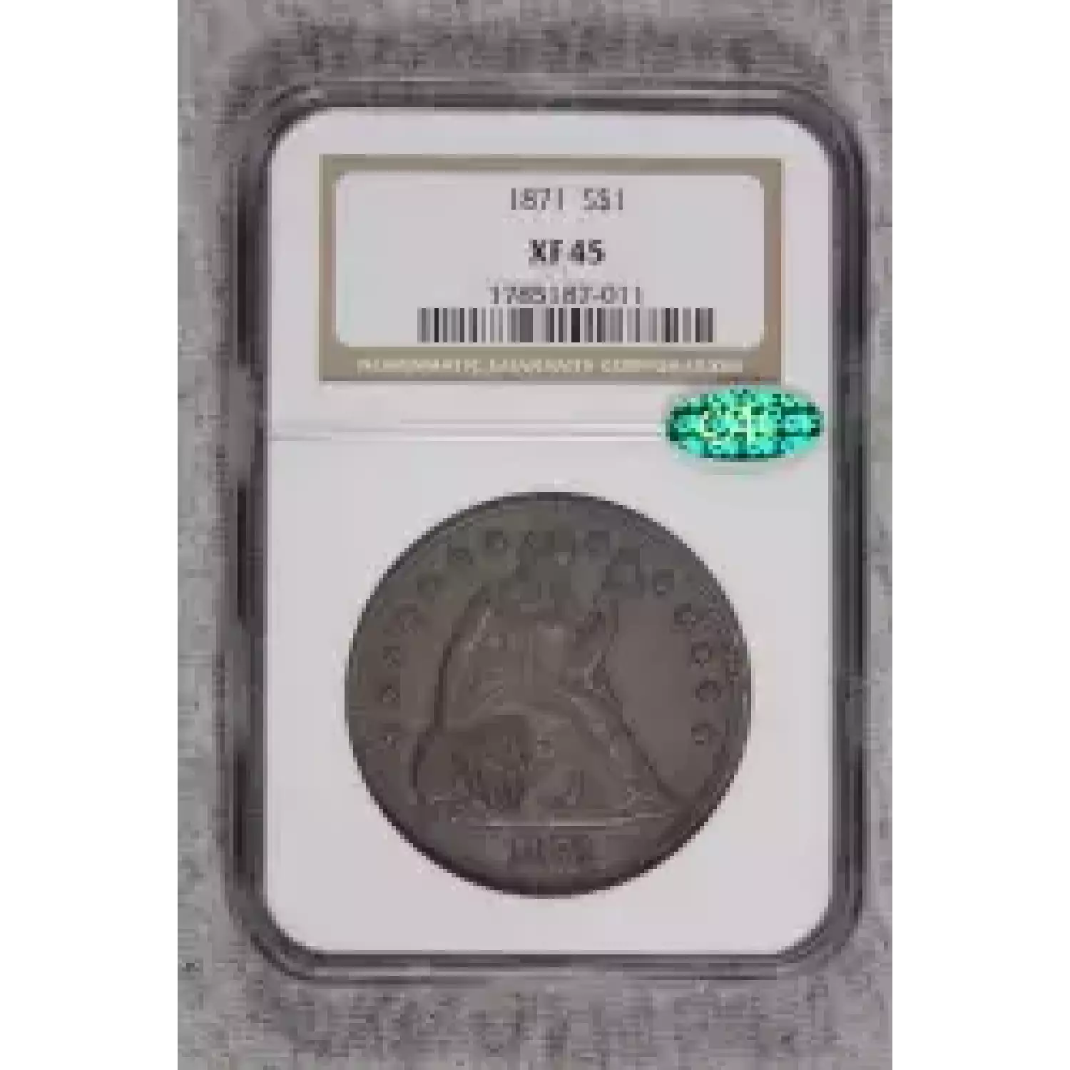 508761 | 1871-XF-45 Liberty Seated Silver Dollars NGC XF-45 CAC | NGC | XF-45 | Sold: 21/07/2015 | $575 |