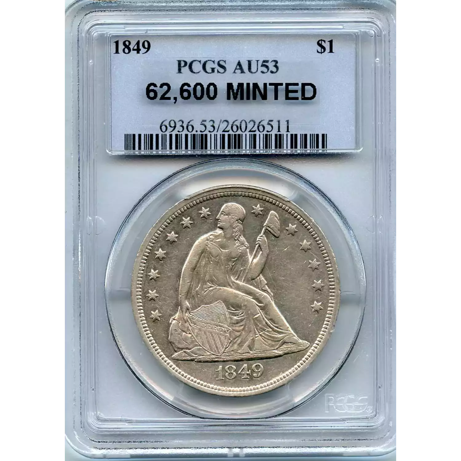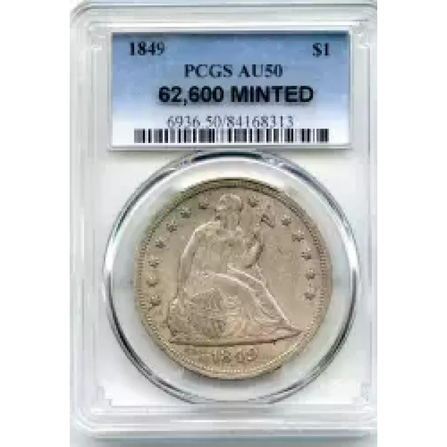 509121 | 1849-AU-53 Liberty Seated Silver Dollars PCGS AU-53 | PCGS | AU-53 | Sold: 20/04/2017 | $1,125 |