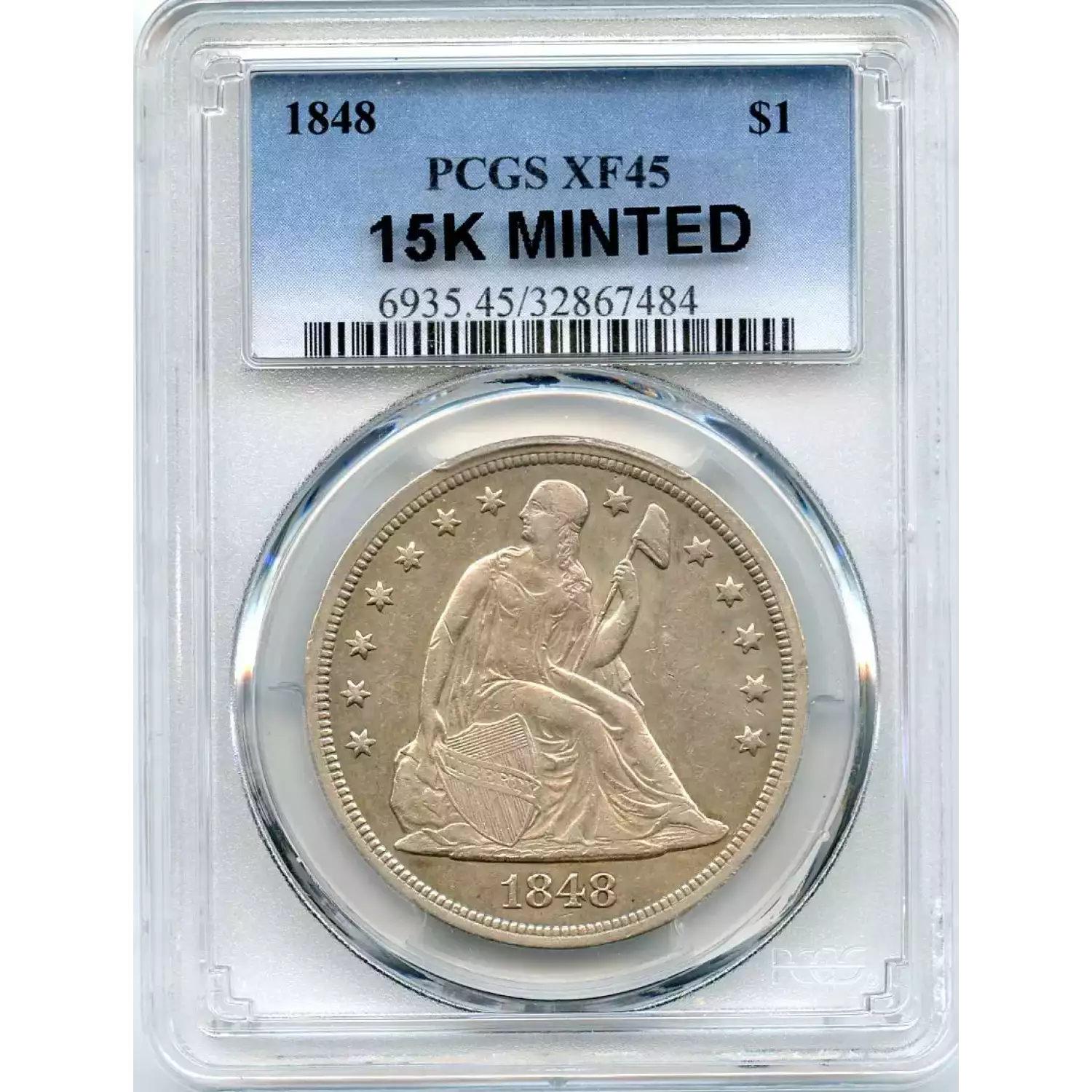 509168 | 1848-XF-45 Liberty Seated Silver Dollars PCGS XF-45 | PCGS | XF-45 | Sold: 03/02/2016 | $1,350 |
