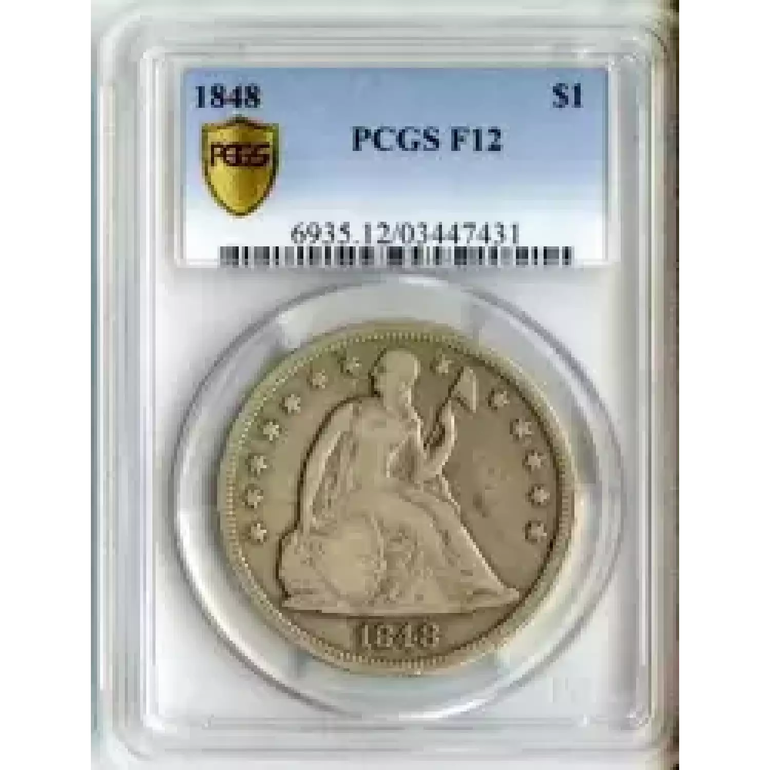 509197 | 1848-F-12 Liberty Seated Silver Dollars PCGS F-12 | PCGS | F-12 | Sold: 06/03/2016 | $725 |