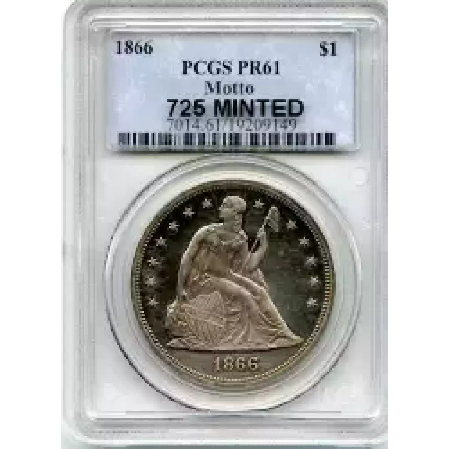 509347 | 1866-PR-61 Liberty Seated Silver Dollars PCGS PR-61 | PCGS | PR-61 | Sold: 31/03/2016 | $2,400 |