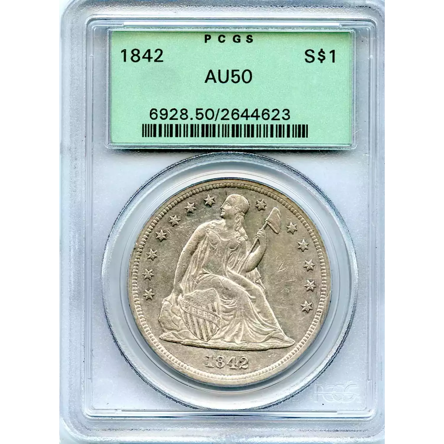 509366 | 1842-AU-50 Liberty Seated Silver Dollars PCGS AU-50 | PCGS | AU-50 | Sold: 09/10/2016 | $700.03 |