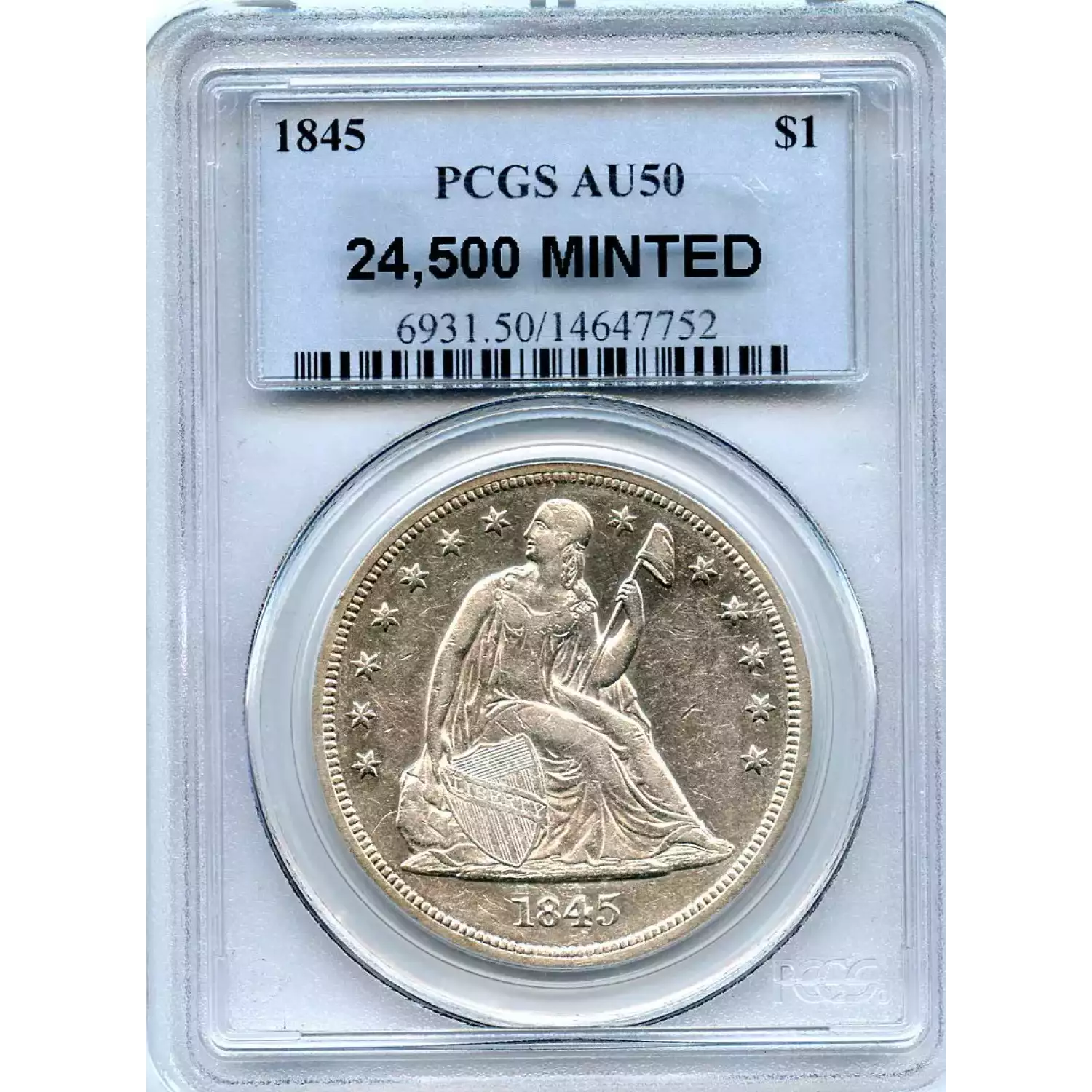 509369 | 1845-AU-50 Liberty Seated Silver Dollars PCGS AU-50 | PCGS | AU-50 | Sold: 29/01/2017 | $1,575 |