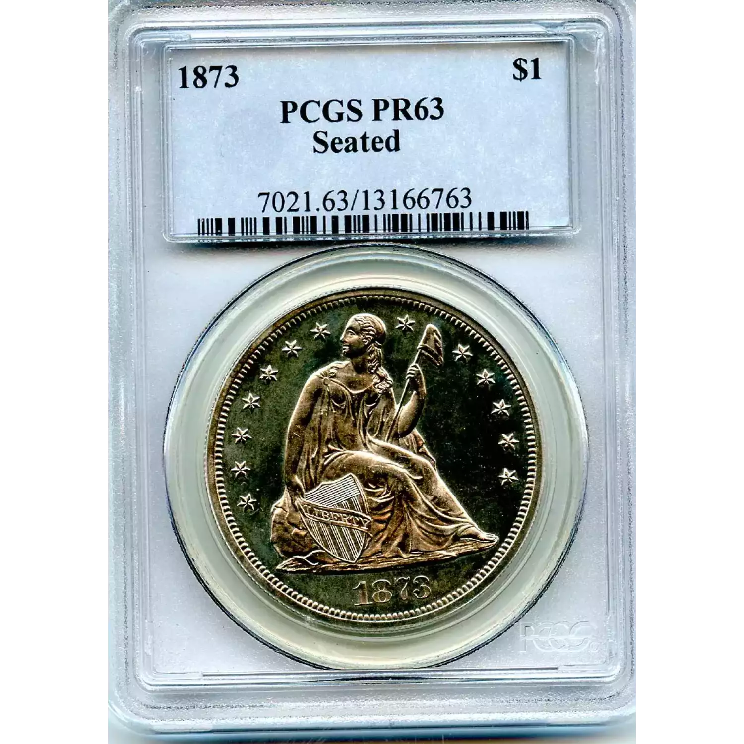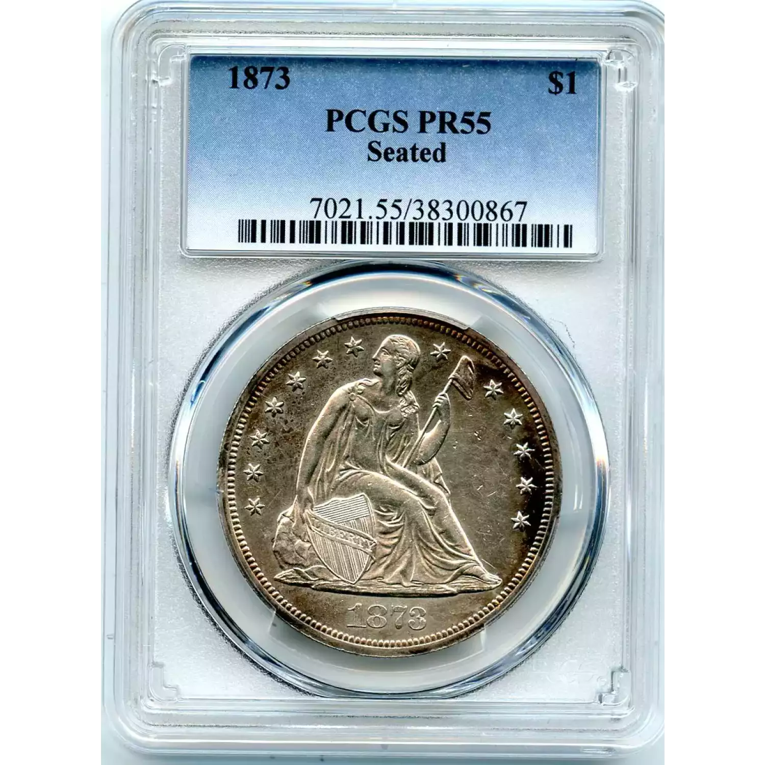 513957 | 1873-PR-55 Liberty Seated Silver Dollars PCGS PR-55 | PCGS | PR-55 | Sold: 07/05/2020 | $1,800 |