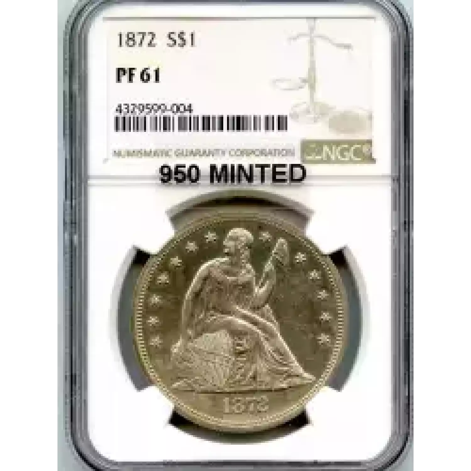 509637 | 1872-PF-61 Liberty Seated Silver Dollars NGC PF-61 | NGC | PF-61 | Sold: 05/06/2016 | $2,000 |
