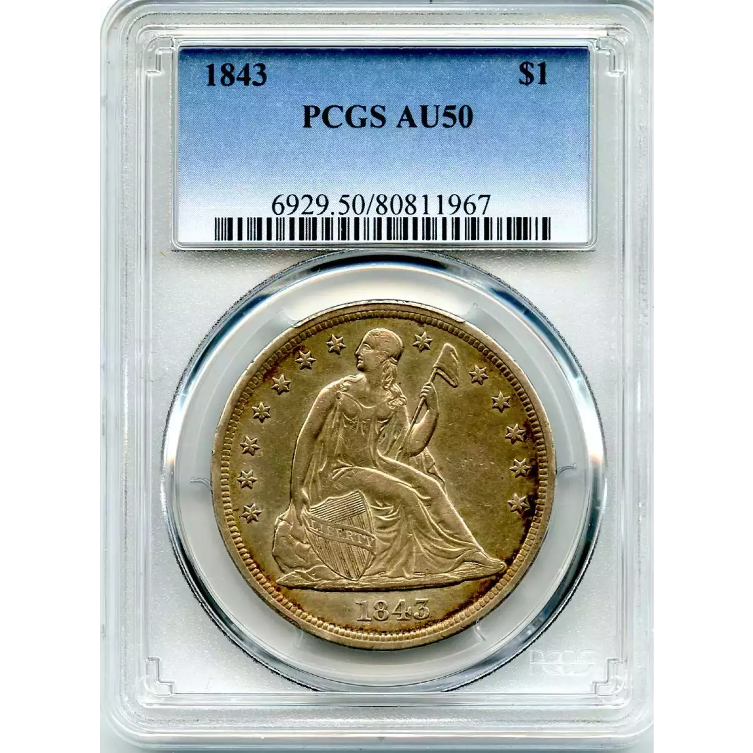 509754 | 1843-AU-53 Liberty Seated Silver Dollars PCGS AU-53 | PCGS | AU-53 | Sold: 26/07/2017 | $1,250 |
