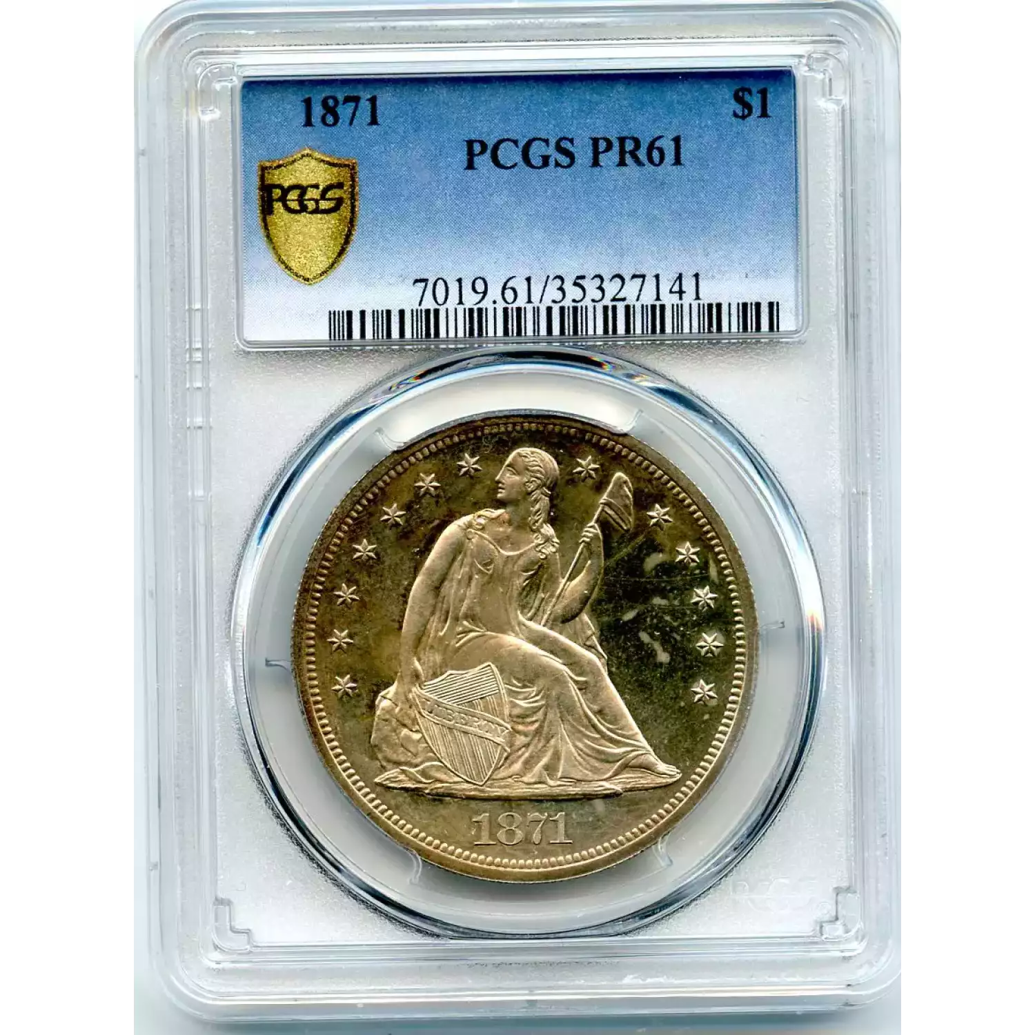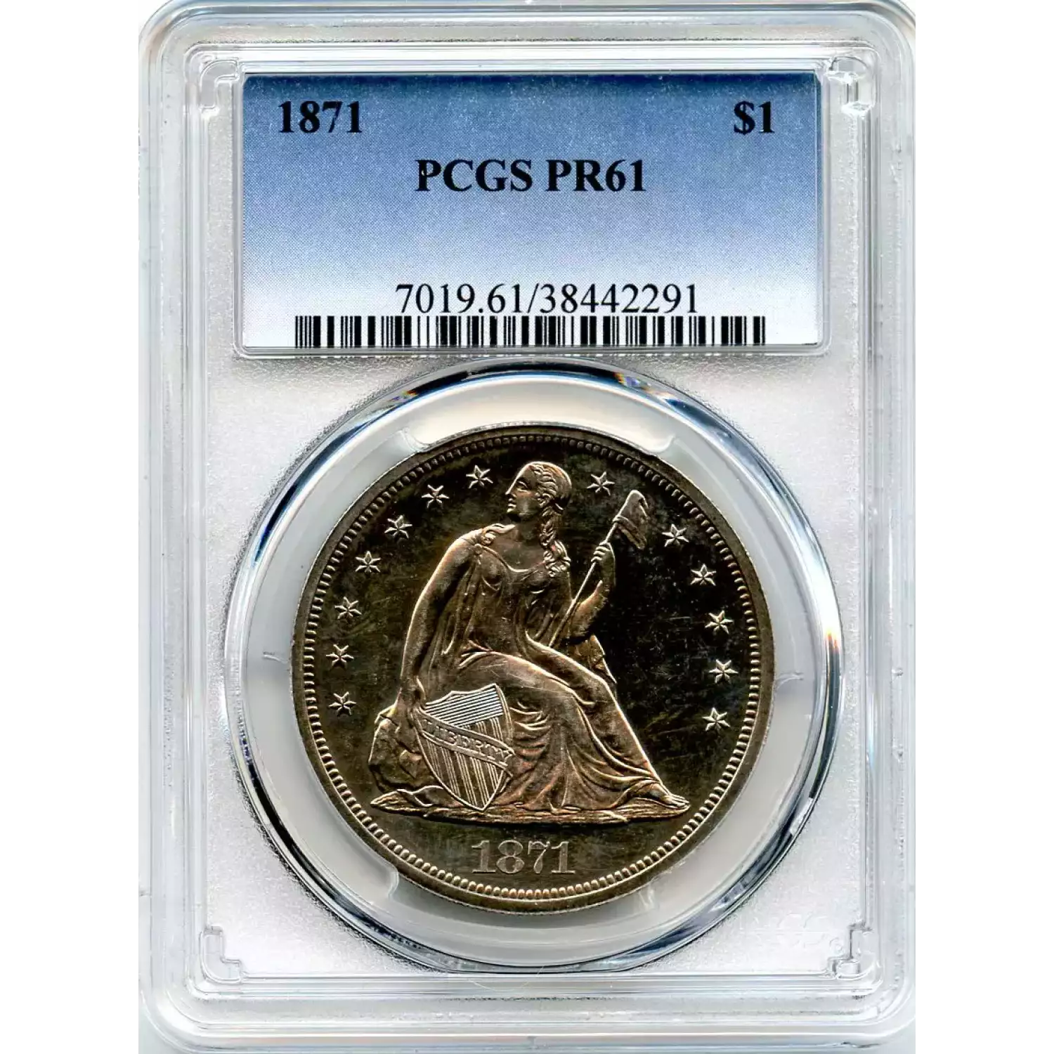 513775 | 1871-PR-61 Liberty Seated Silver Dollars PCGS PR-61 | PCGS | PR-61 | Sold: 01/03/2020 | $2,175 |
