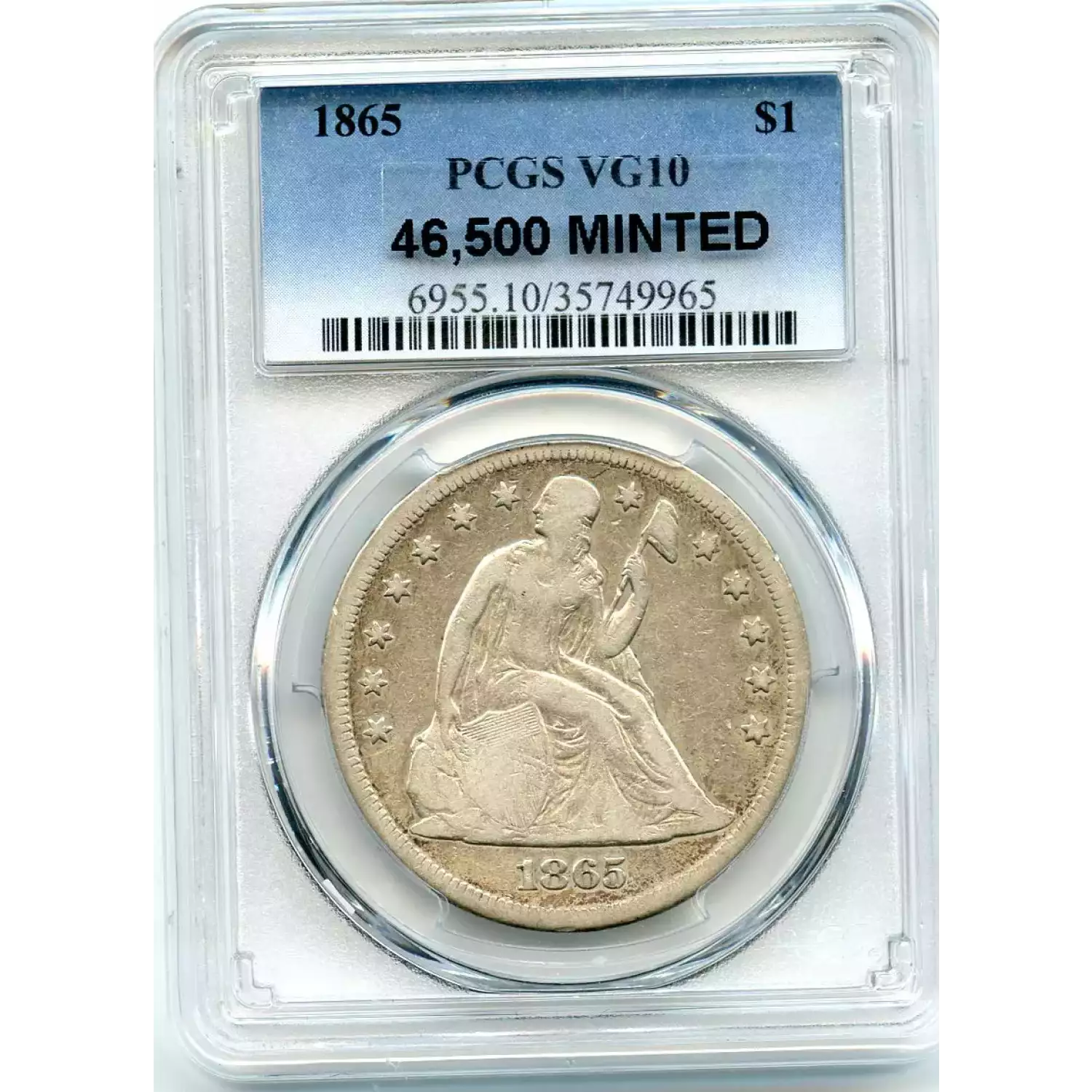 512154 | 1865-VG-10 Liberty Seated Silver Dollars PCGS VG-10 | PCGS | VG-10 | Sold: 28/10/2018 | $700 |