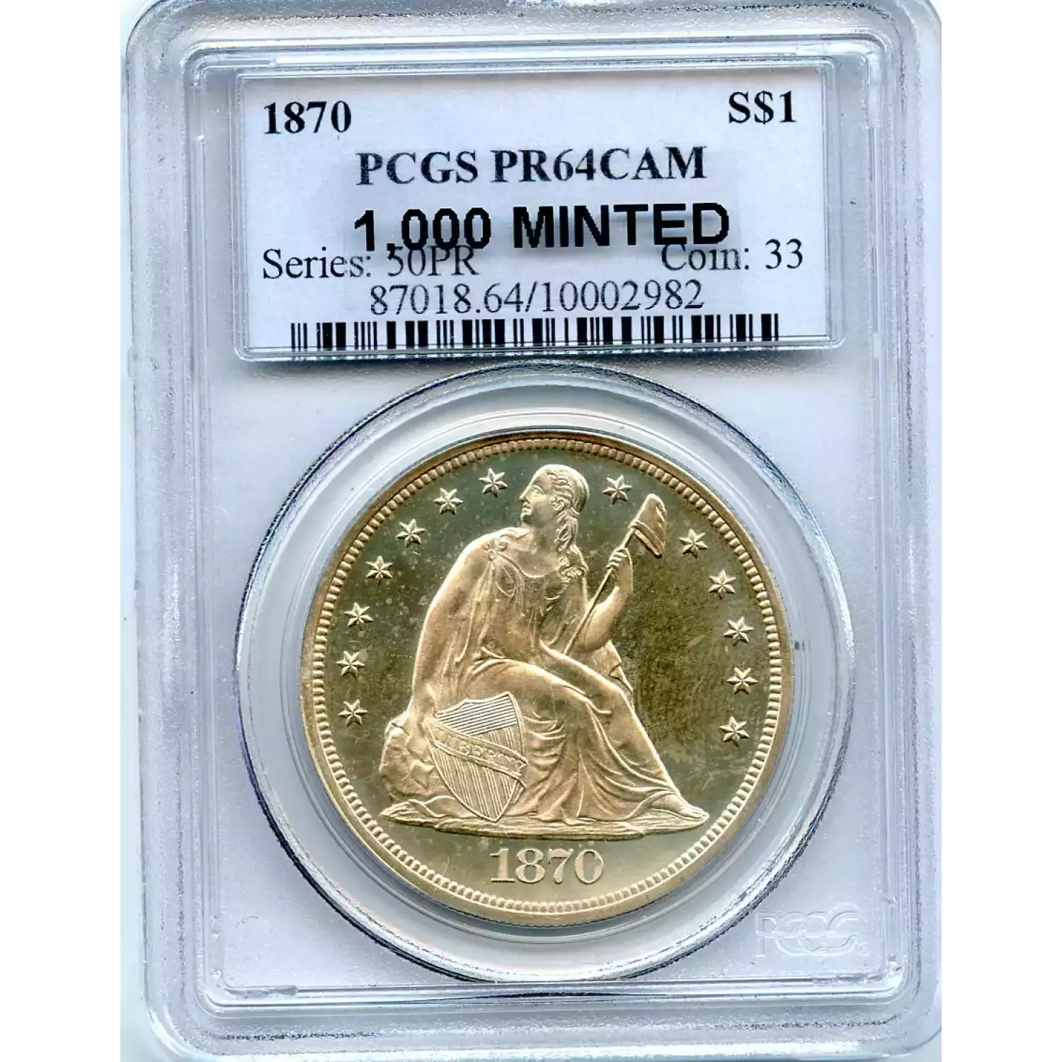 513111 | 1870-PR-64 Liberty Seated Silver Dollars PCGS PR-64 CAM | PCGS | PR-64 | Sold: 02/01/2020 | $4,280 |