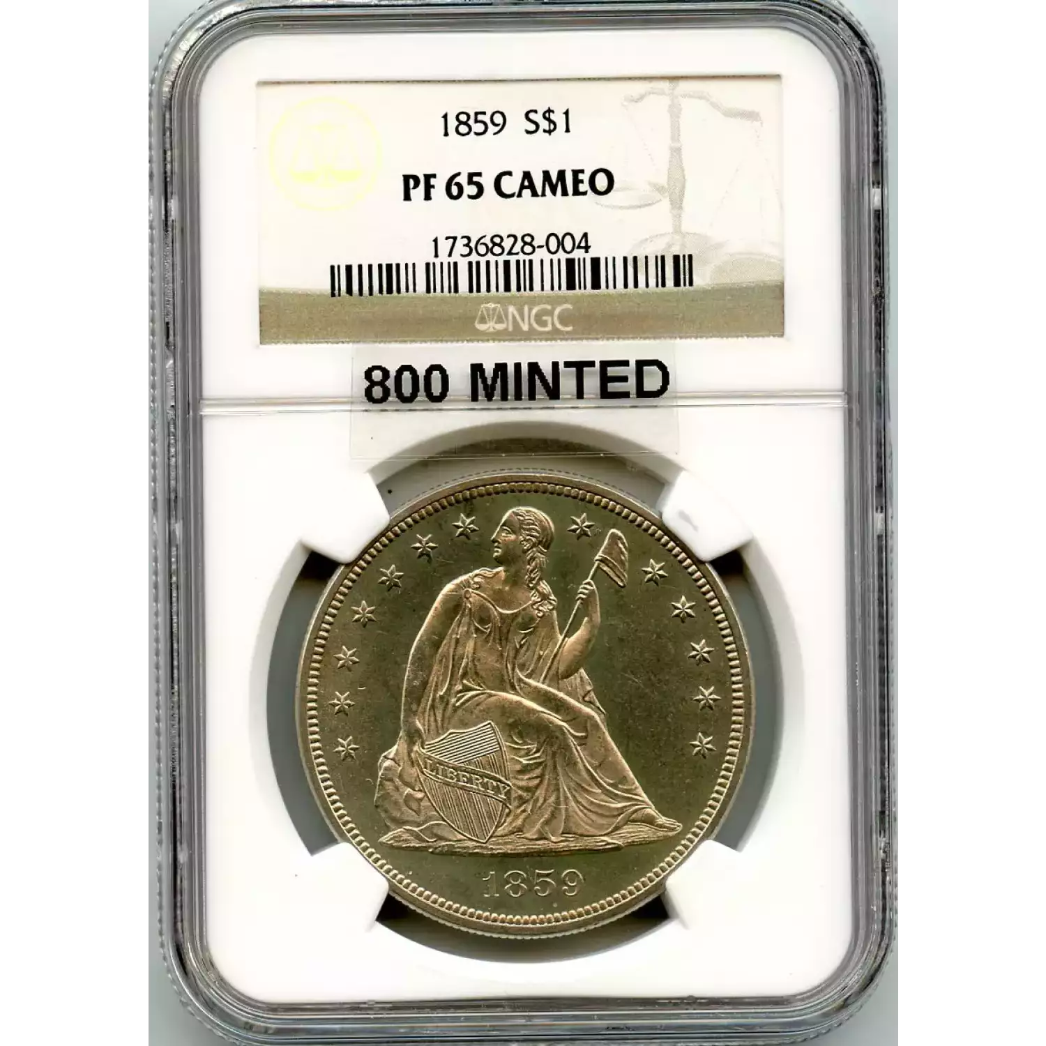 513116 | 1859-PR-65 Liberty Seated Silver Dollars NGC PR-65 CAM | NGC | PR-65 | Sold: 02/01/2020 | $9,982 |