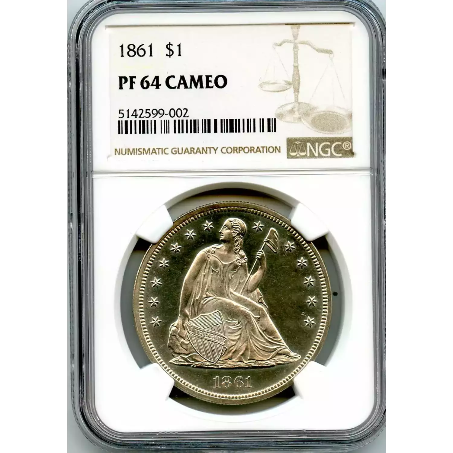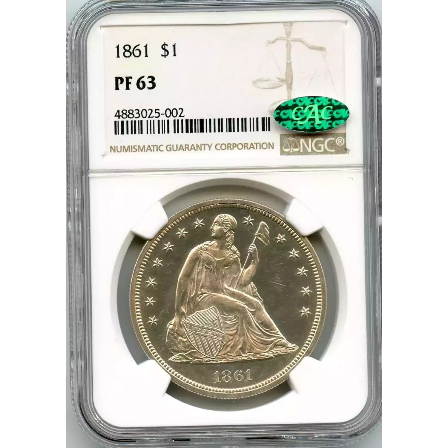 513402 | 1861-PR-63 Liberty Seated Silver Dollars NGC PR-63 CAC | NGC | PR-63 | Sold: 09/12/2019 | $4,250 |