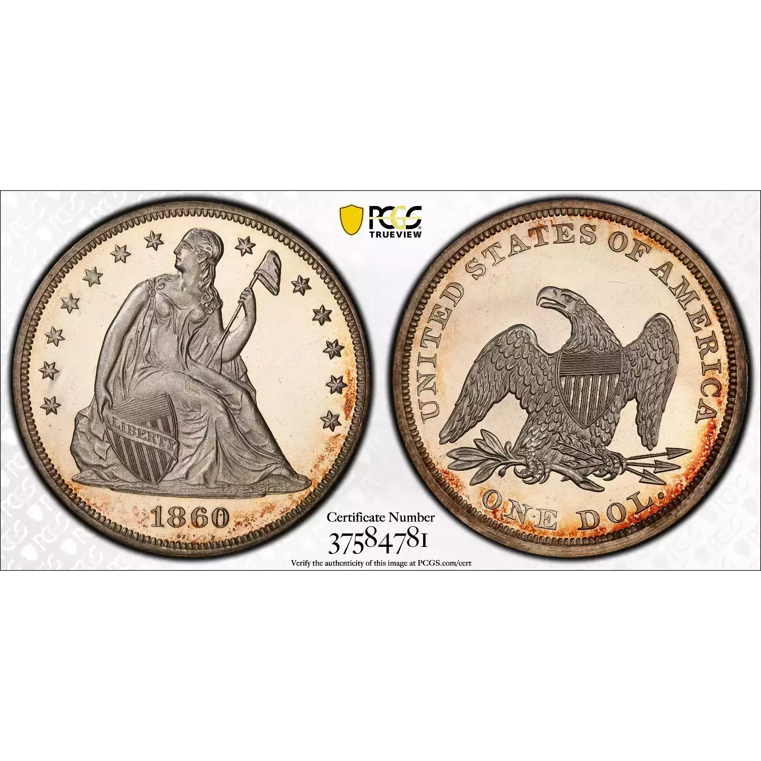 513447 | 1860-PR-63 Liberty Seated Silver Dollars PCGS PR-63 | PCGS | PR-63 | Sold: 11/05/2020 | $4,000 |