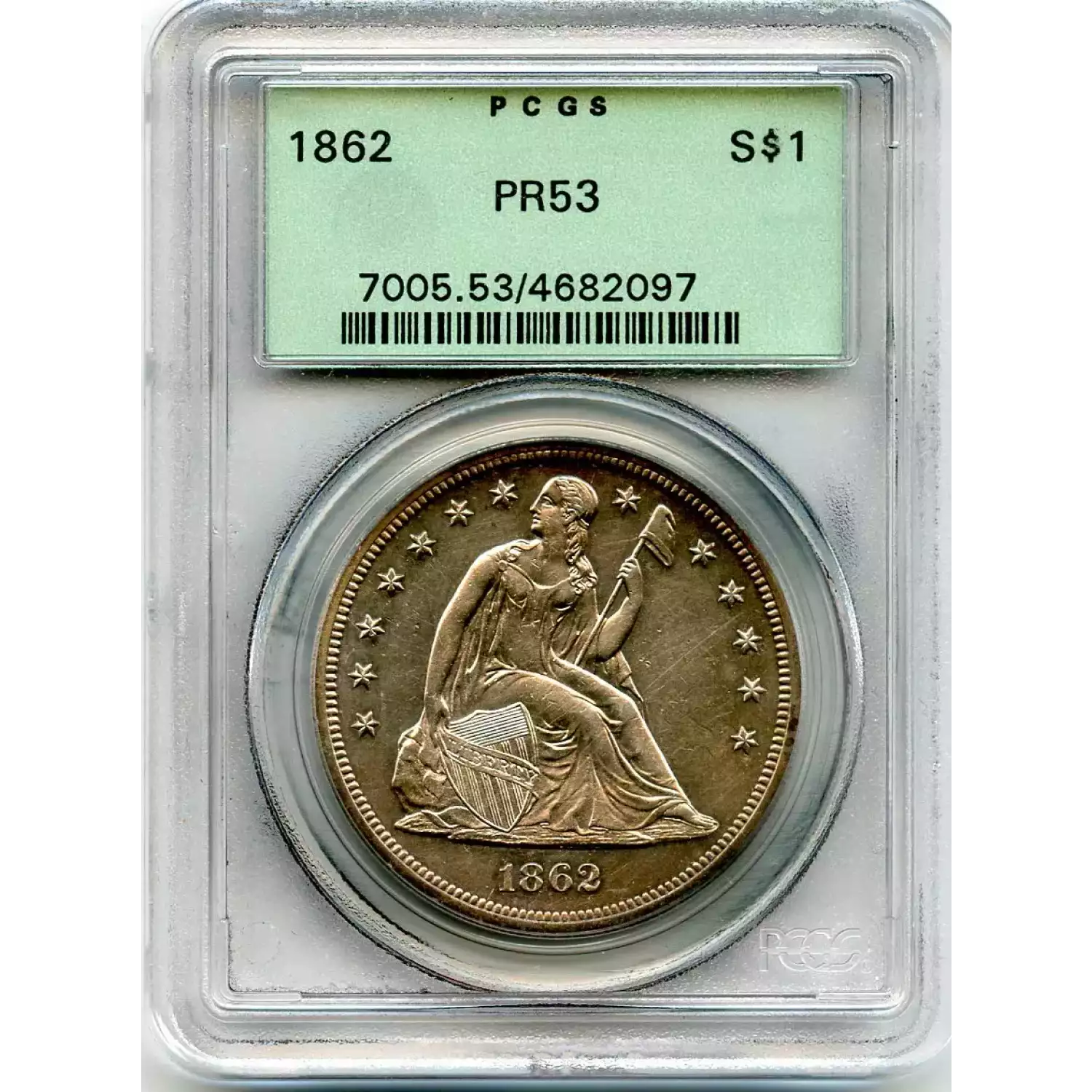 513976 | 1862-PR-53 Liberty Seated Silver Dollars PCGS PR-53 | PCGS | PR-53 | Sold: 20/05/2020 | $2,100 |