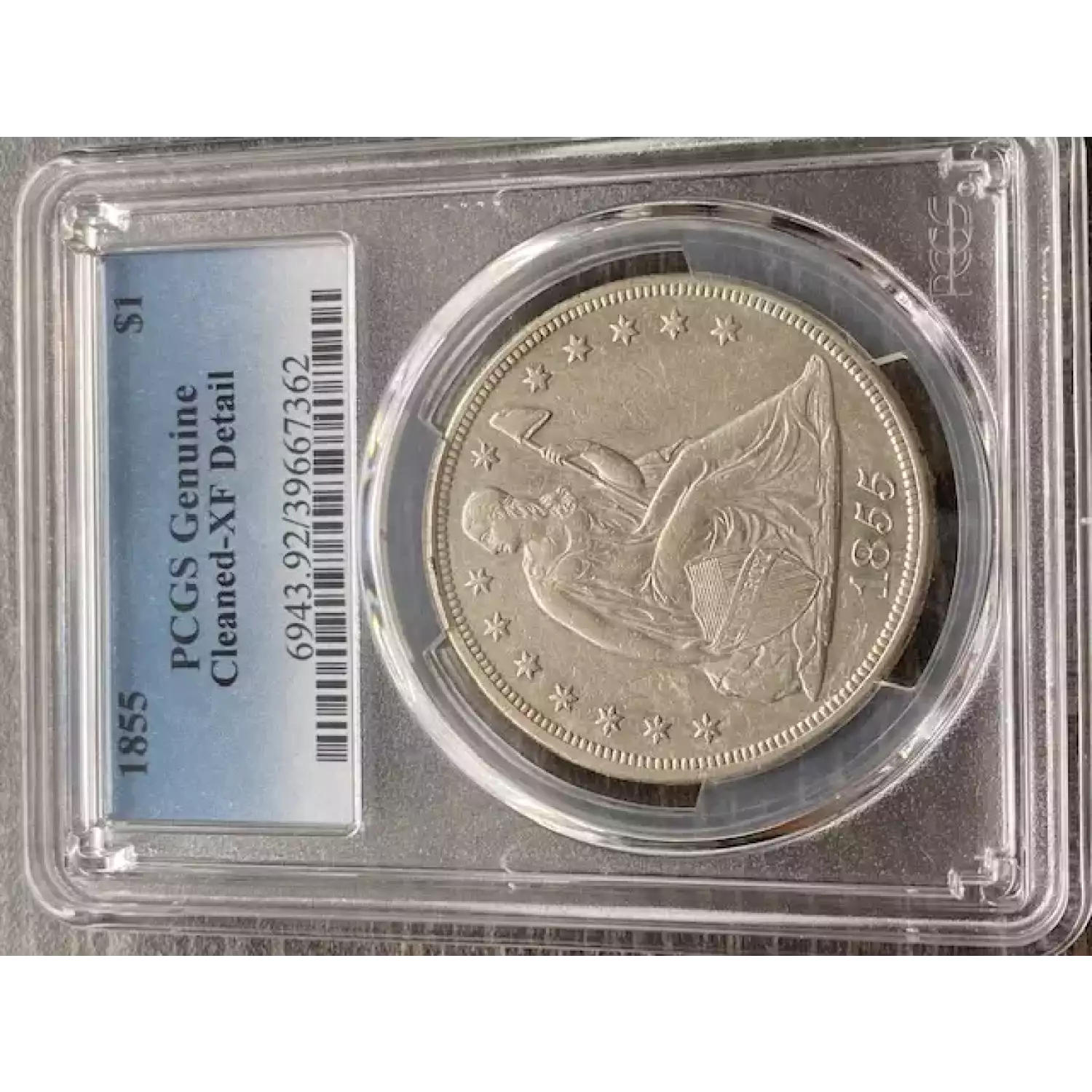514436 | 1855-Genuine (92 - Cleaning) Liberty Seated Silver Dollars PCGS Genuine (92 - Cleaning) | PCGS | Genuine (92 - Cleaning) | Sold: 28/02/2021 | $4,475 |