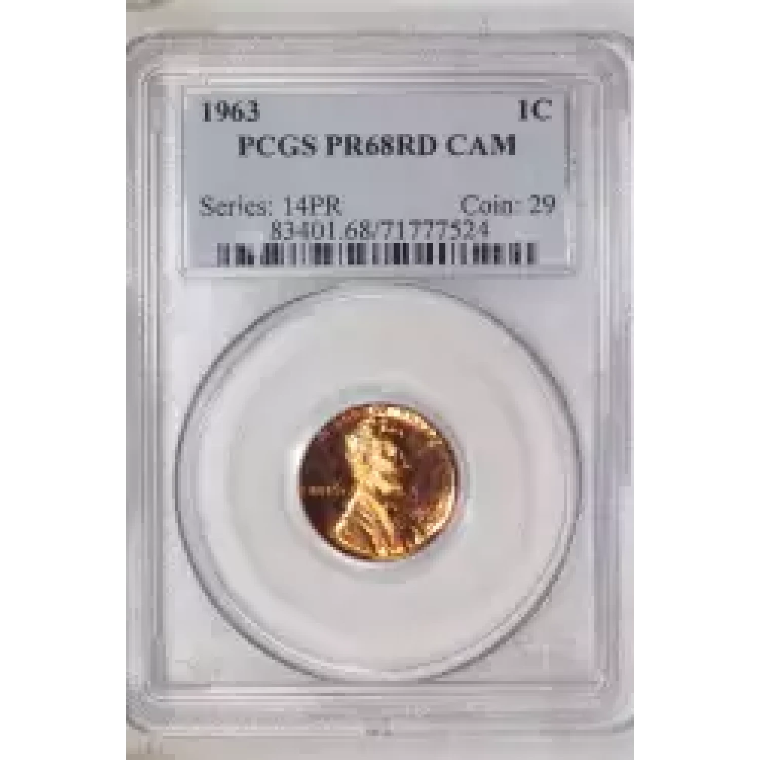 516339 | 1963 Small Cents Lincoln, Memorial Reverse PCGS PR-68 CAM | PCGS | PR-68 | Sold: 03/07/2023 | $38 |