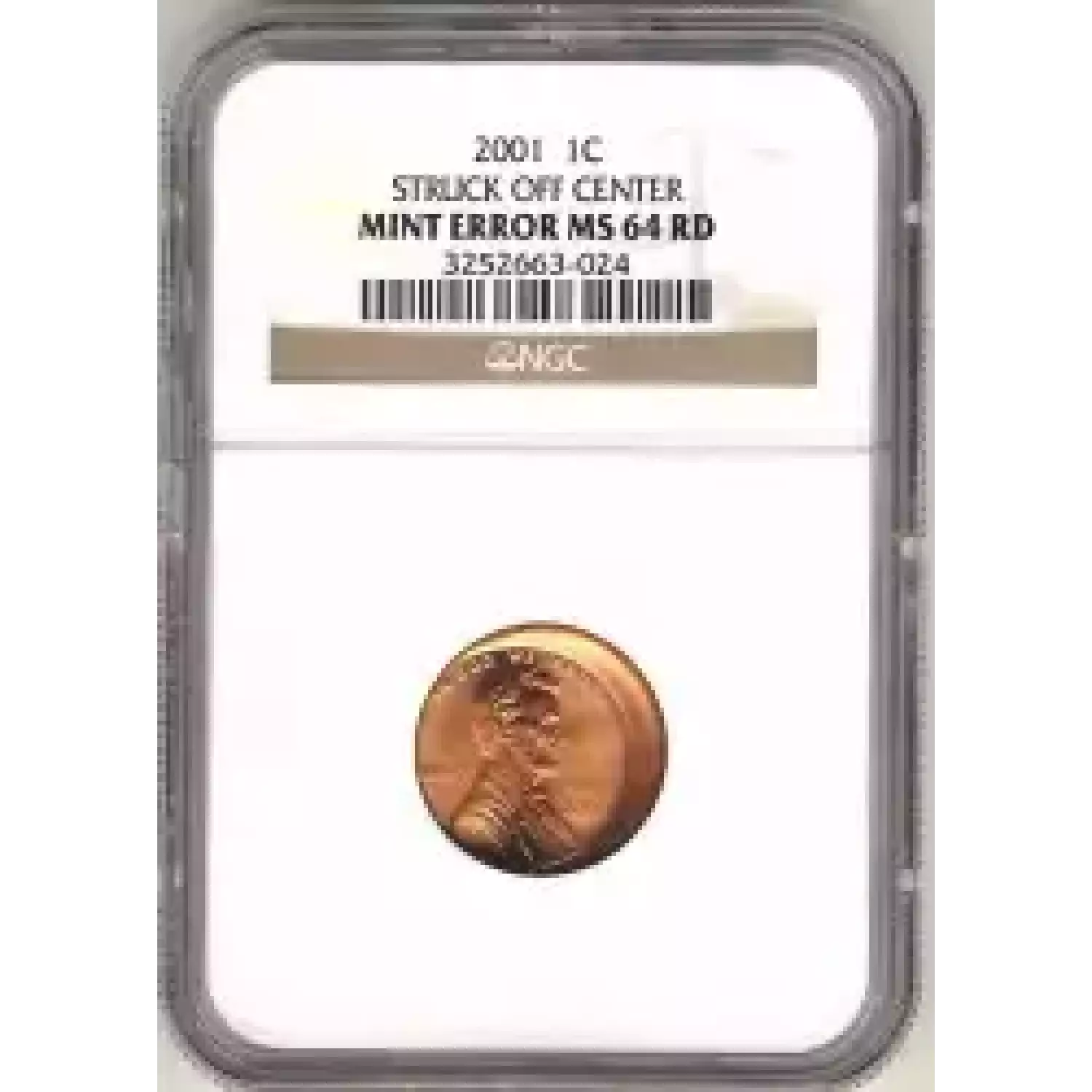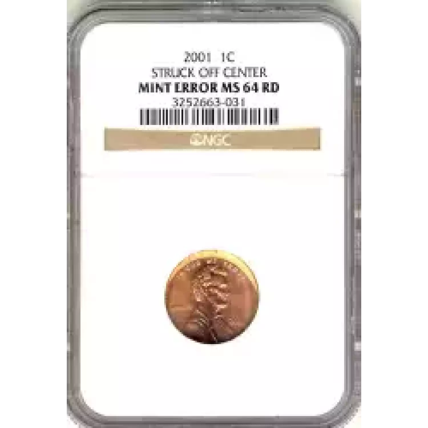 506073 | 2001-MS-64 Small Cents Lincoln, Memorial Reverse NGC MS-64 RD | NGC | MS-64 | Sold: 12/01/2013 | $6.56 |