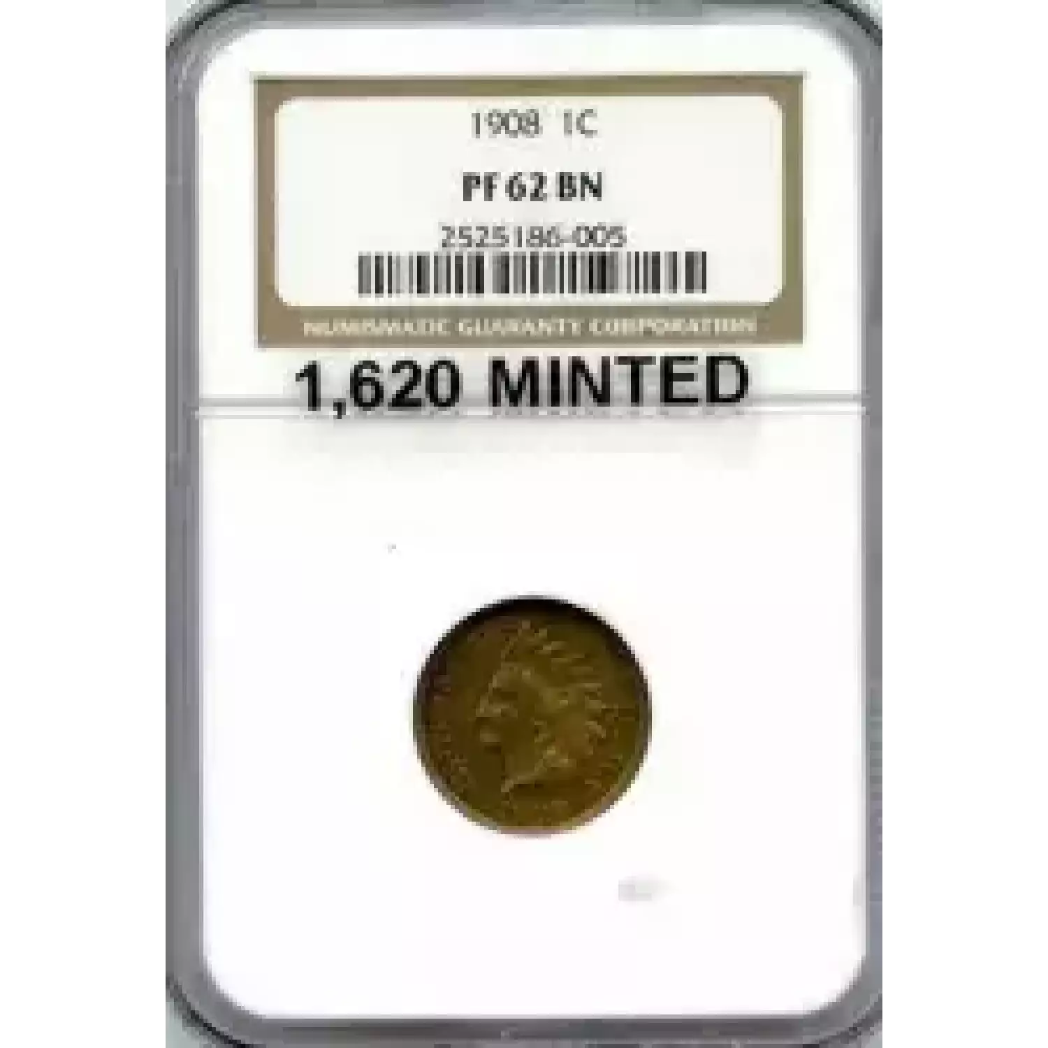 506240 | 1908-PF-62 Small Cents Lincoln, Memorial Reverse NGC PF-62 BN | NGC | PF-62 | Sold: 15/09/2012 | $250 |