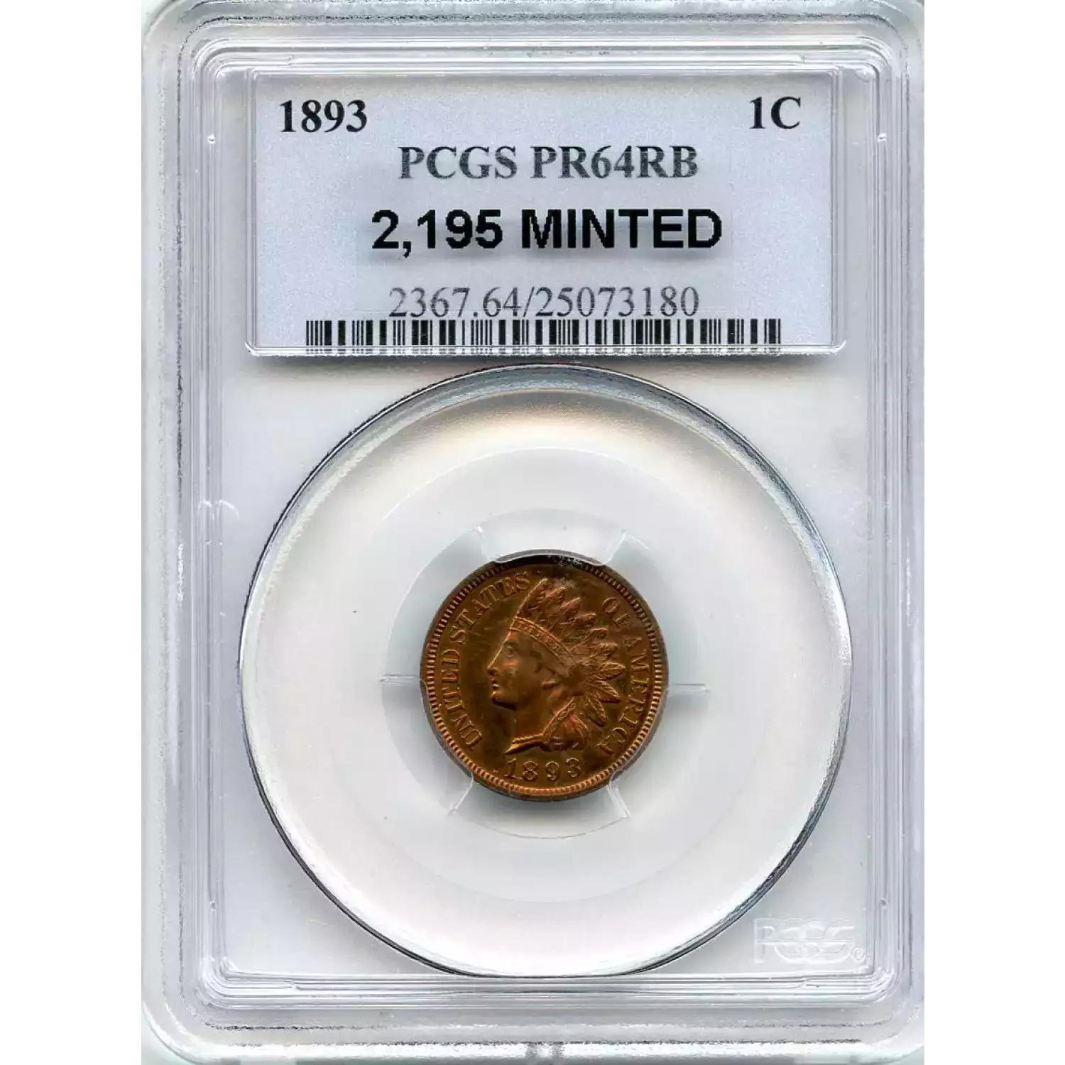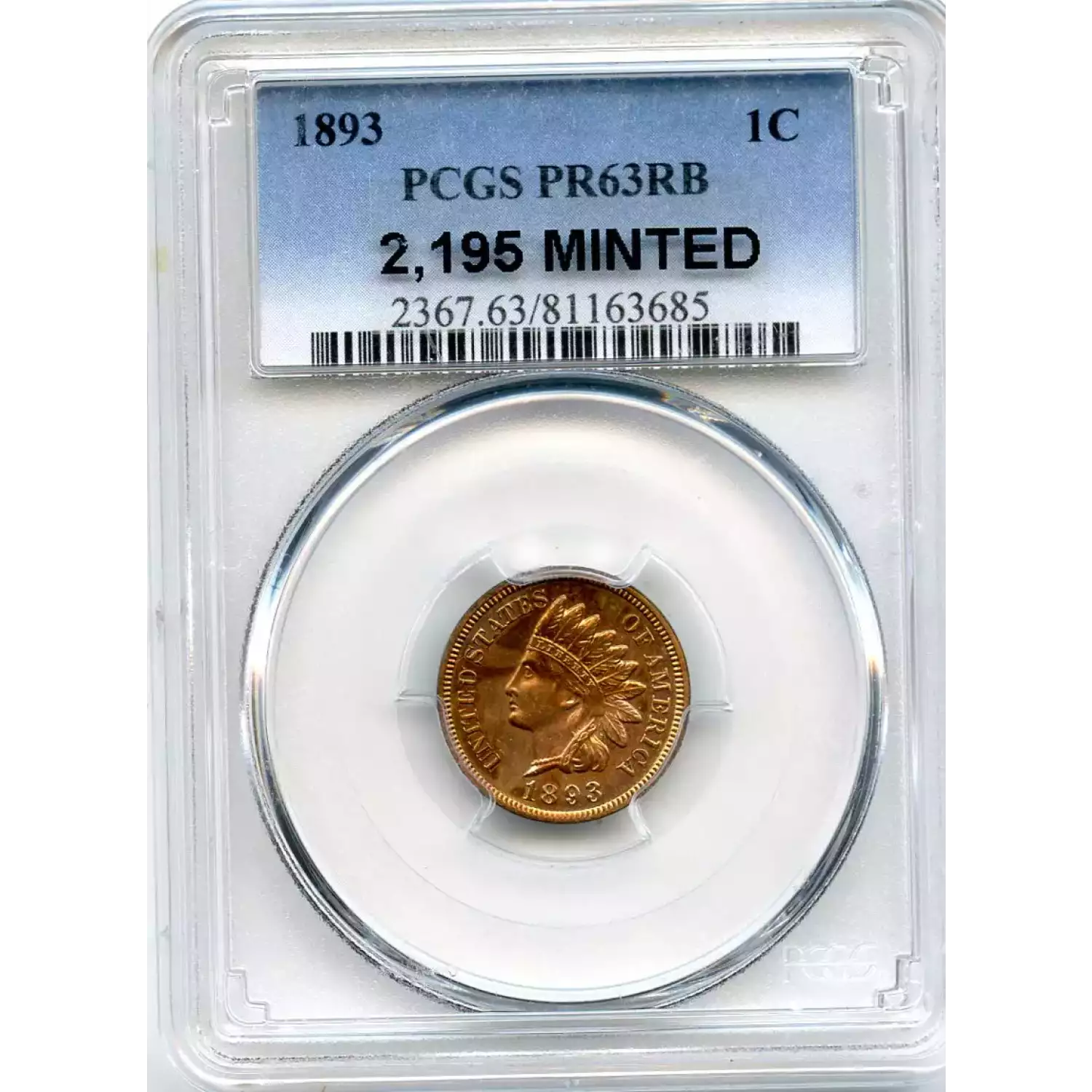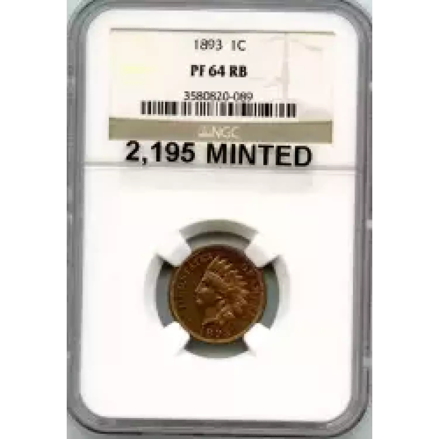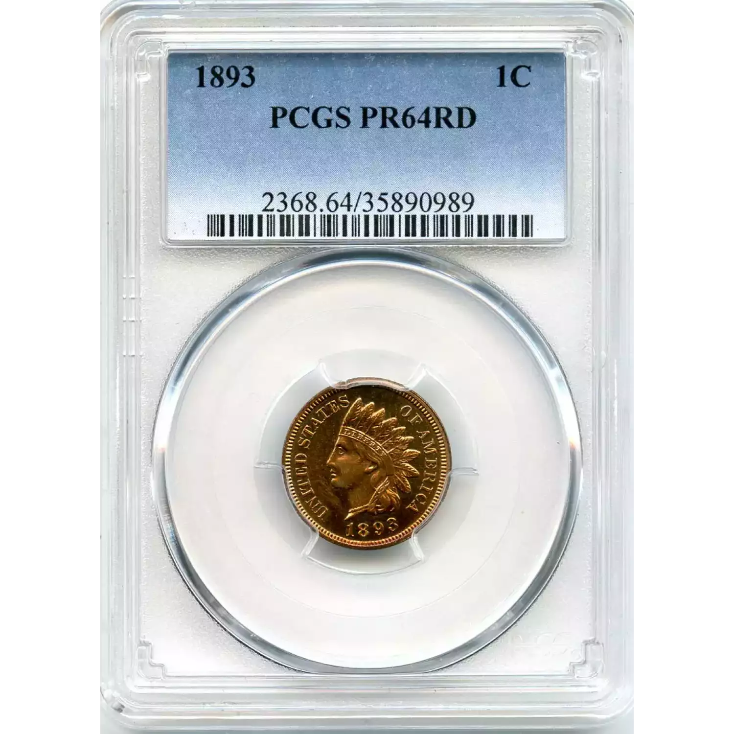 512584 | 1893-PR-64 Small Cents Lincoln, Memorial Reverse PCGS PR-64 RB | PCGS | PR-64 | Sold: 01/03/2019 | $405 |