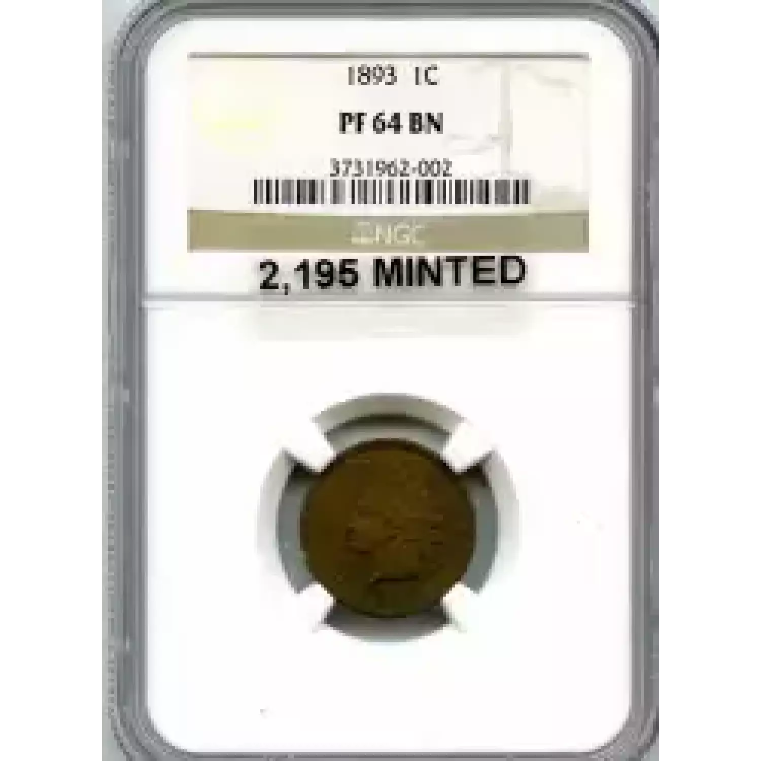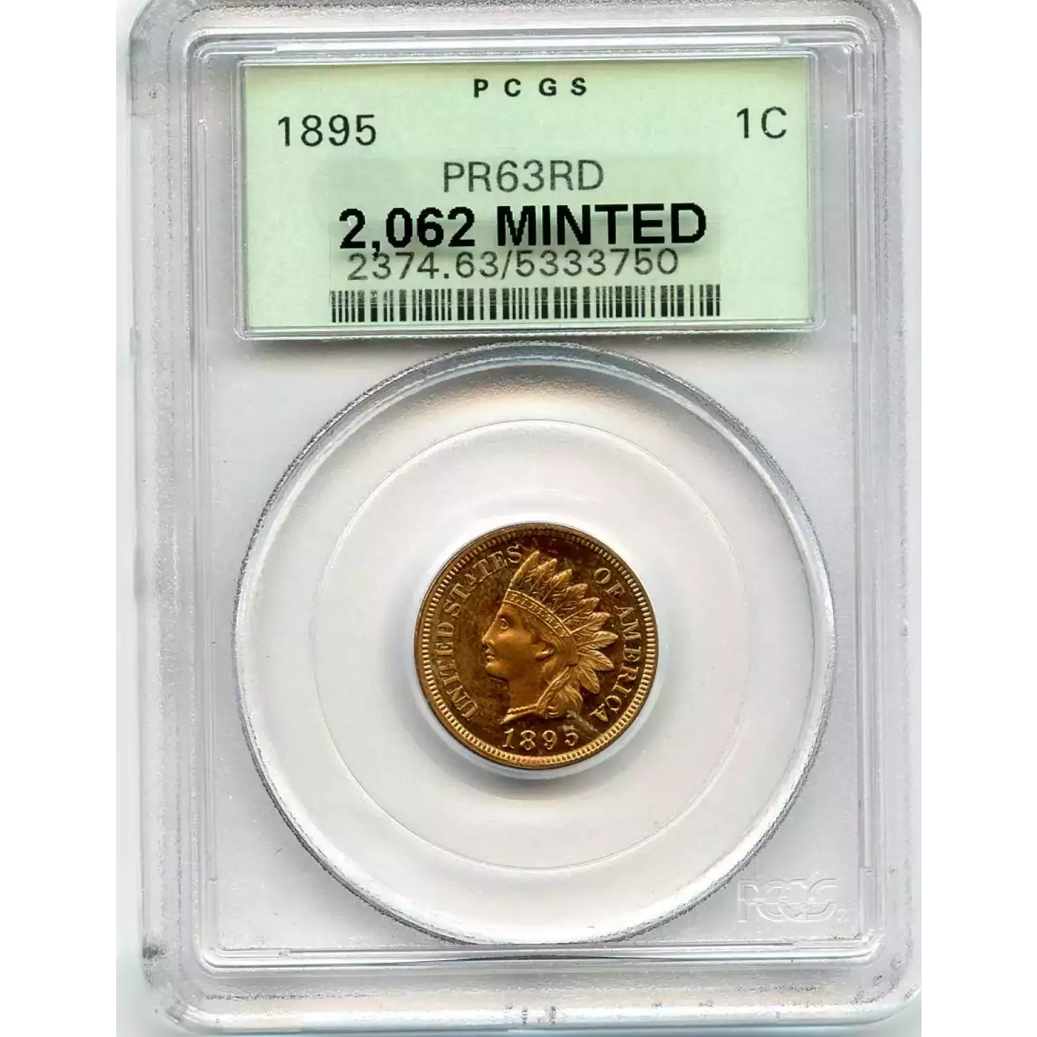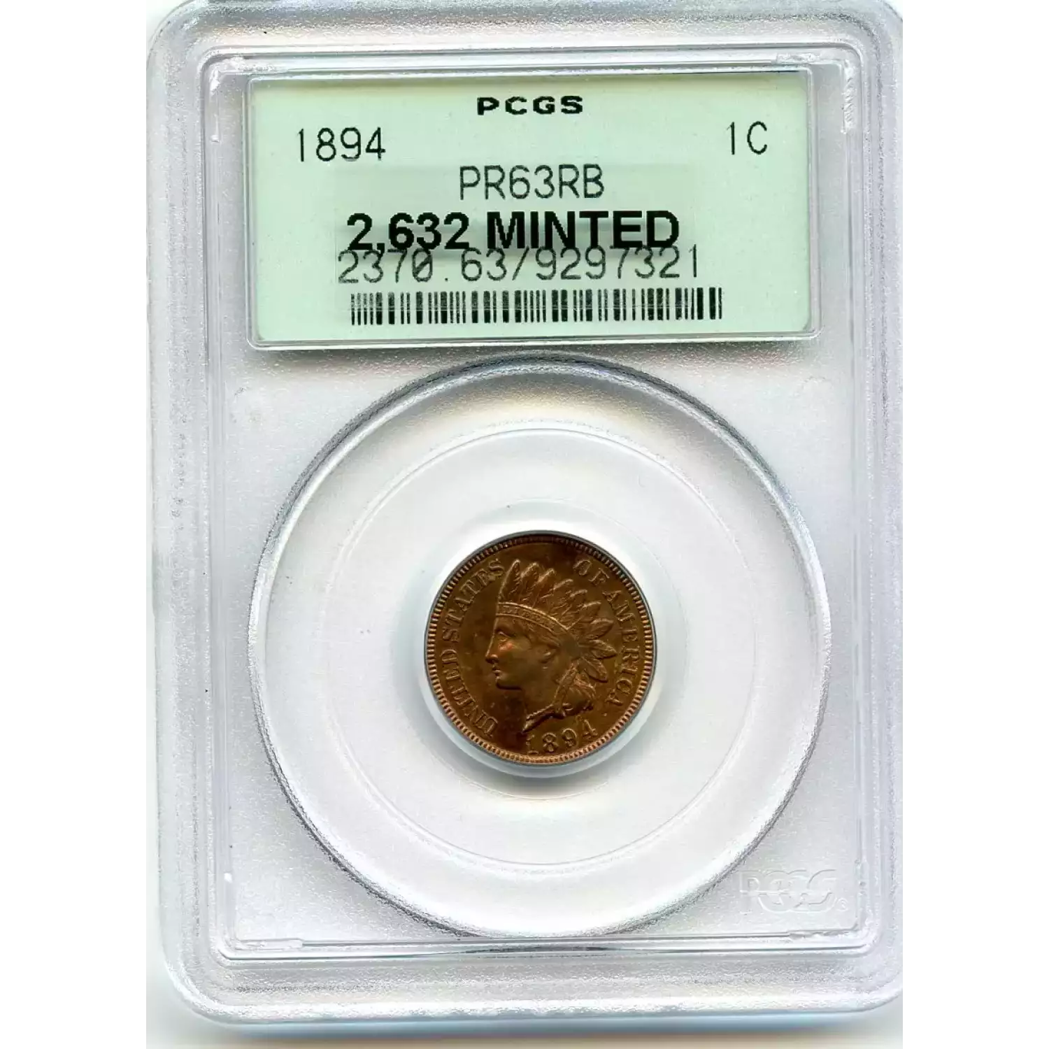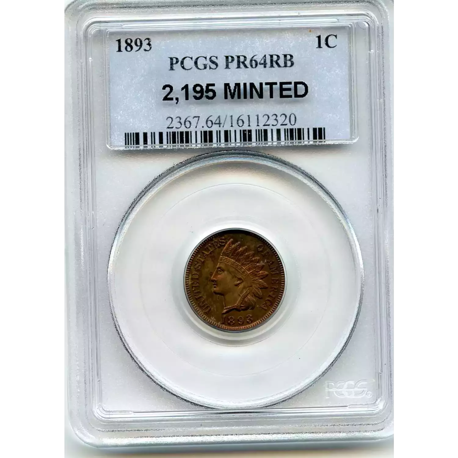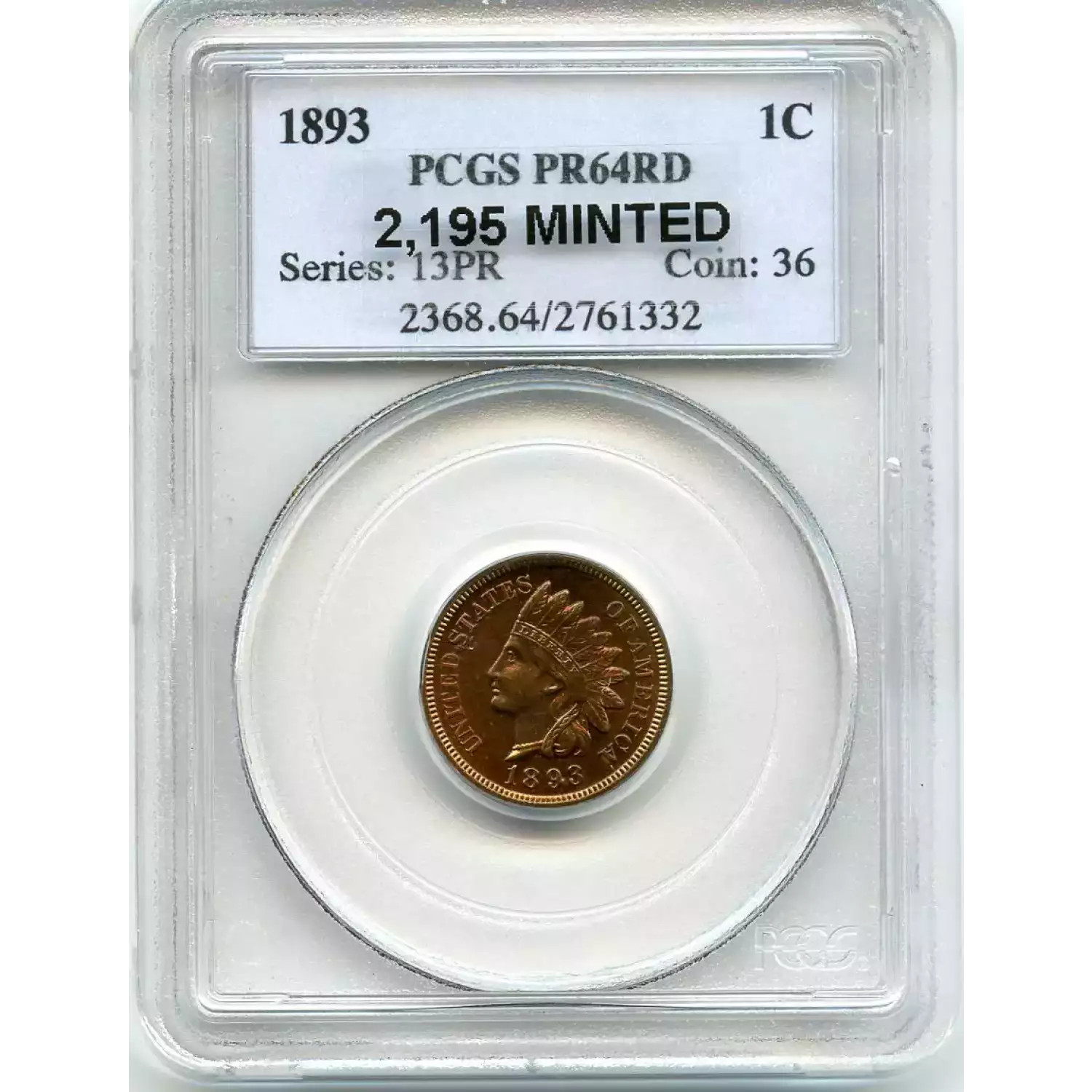 512584 | 1893-PR-64 Small Cents Lincoln, Memorial Reverse PCGS PR-64 RB | PCGS | PR-64 | Sold: 01/03/2019 | $405 |