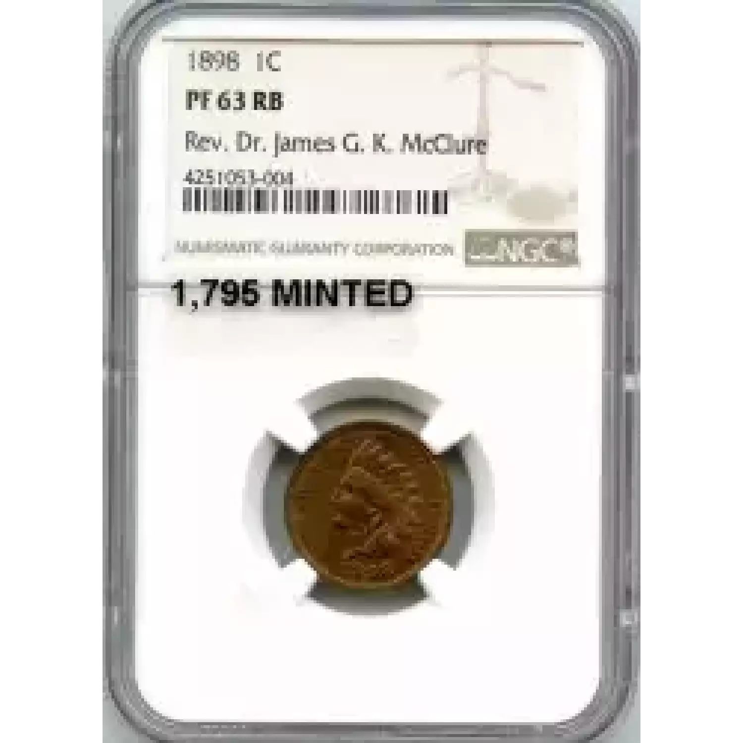 513196 | 1898-PR-63 Small Cents Lincoln, Memorial Reverse NGC PR-63 RB | NGC | PR-63 | Sold: 26/03/2020 | $235 |