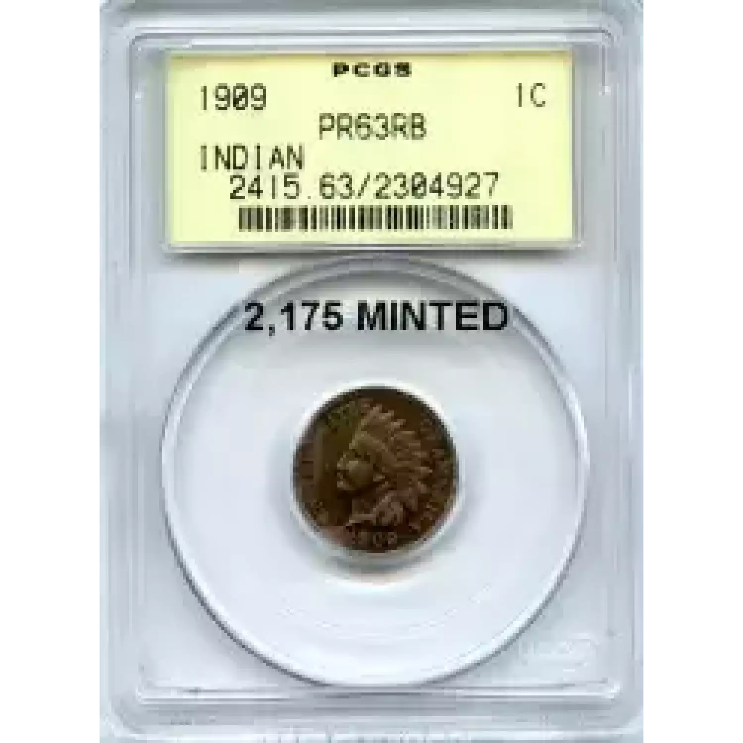 509266 | 1909-PR-64 Small Cents Lincoln, Memorial Reverse PCGS PR-64 BN | PCGS | PR-64 | Sold: 31/03/2016 | $300 |
