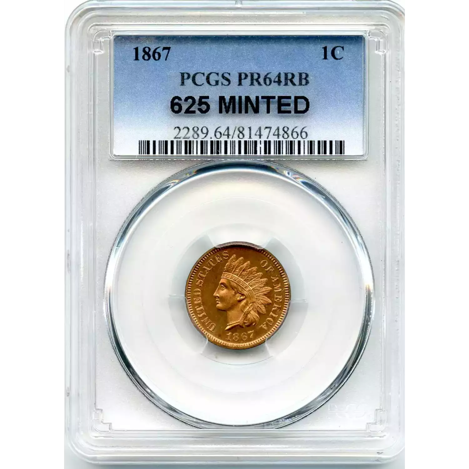 510156 | 1867-PR-64 Small Cents Lincoln, Memorial Reverse PCGS PR-64 RB | PCGS | PR-64 | Sold: 07/11/2016 | $1,000 |